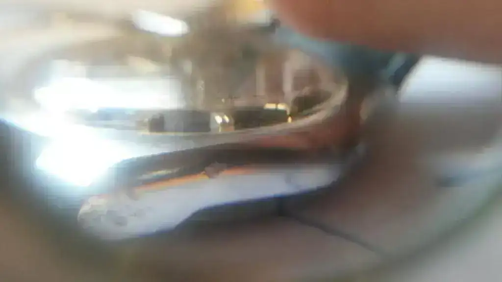 Como contrapartida, en un lateral de la caja se encuentran unos arañazos, los cuales he hecho coincidir con una iluminación y fotografiar en macro para que el interesado los vea bien, reseño, que son menos evidentes de lo que se ve en la foto, que esta hecha a posta para destacar éstos defectos, en vivo son bastante superficiales y no se advierten a no ser que se fije uno.