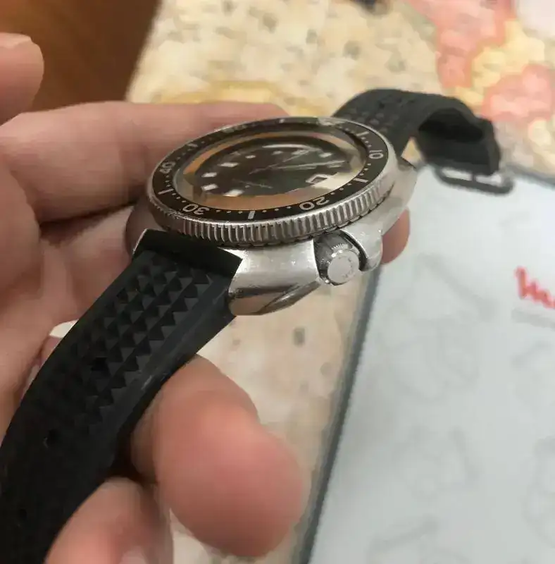 Aprovecho estas dos ultimas fotos para que veamos la corona, en el 8000 viene firmada SEIKO, no se rosca, no se bloquea, nada de nada.