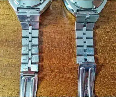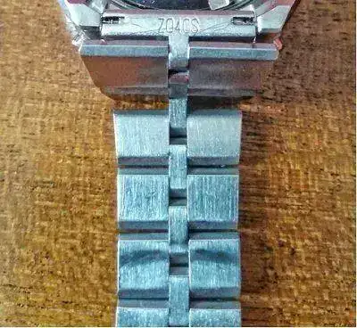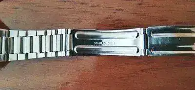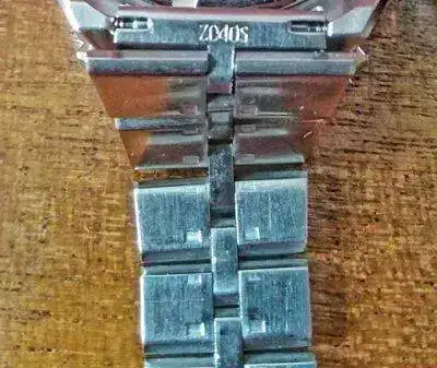 El siguiente punto a tratar del reloj seria el armis. Todo buen aficionado a la marca, en especial de modelos vintage, le suena seguro la palabra "fishbone" es el nombre que se le da a su brazalete. La referencia estampada es como se aprecia en la foto Z040S y tiene la peculiaridad que es mas ancho a las 12 que a las 6. No confundir con el del 6139 - 7100 que lleva el Z050S que solía ser común ir montado en los "franken" de este reloj. Las primeras series tenían un detalle inconfundible en la parte trasera: