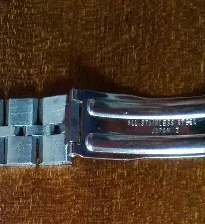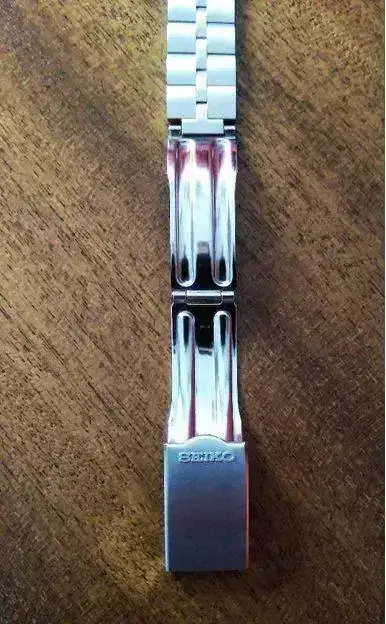 Solo había dial marrón, armis con links de chapa en H sin posibilidad de ajustar. Como buena versión JDM es talla única, unos 17,5 cm de muñeca son el tope para su uso. Al igual que sus hermanos de exportación el link de las 12 es mas ancho que el de las 6.