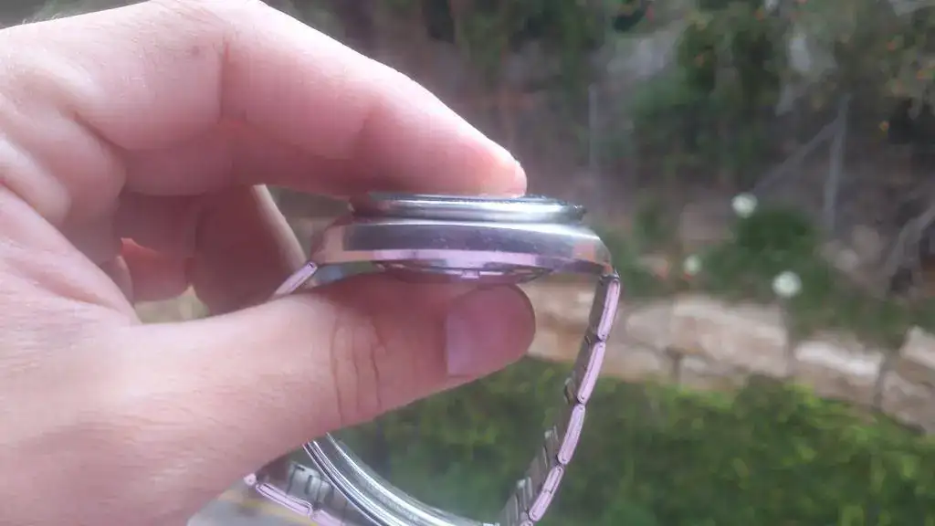 El reloj está en buen estado estético, considerando siempre que tiene más de 40 años. Como podéis comprobar, tiene alguna marca en el bisel externo, pero no es nada exagerado según mi parecer. No obstante, como eso es algo subjetivo, mando las fotos que se quieran, desde los ángulos que se quieran. Las agujas tienen un poco más de desgaste pues la parte donde debería ir el lumen está un poco sucia. Estaba así cuando lo compré y no ha ido a más.