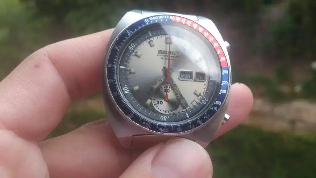 Buenas a todos. Saco a la venta este Seiko 6139-6002, conocido como Coronel Pogue con dial en plata (creo que es el más difícil de conseguir y más en este estado) y con los componentes originales (biseles interno y externo, dial, corona, agujas) a excepción del cristal que es mineral.