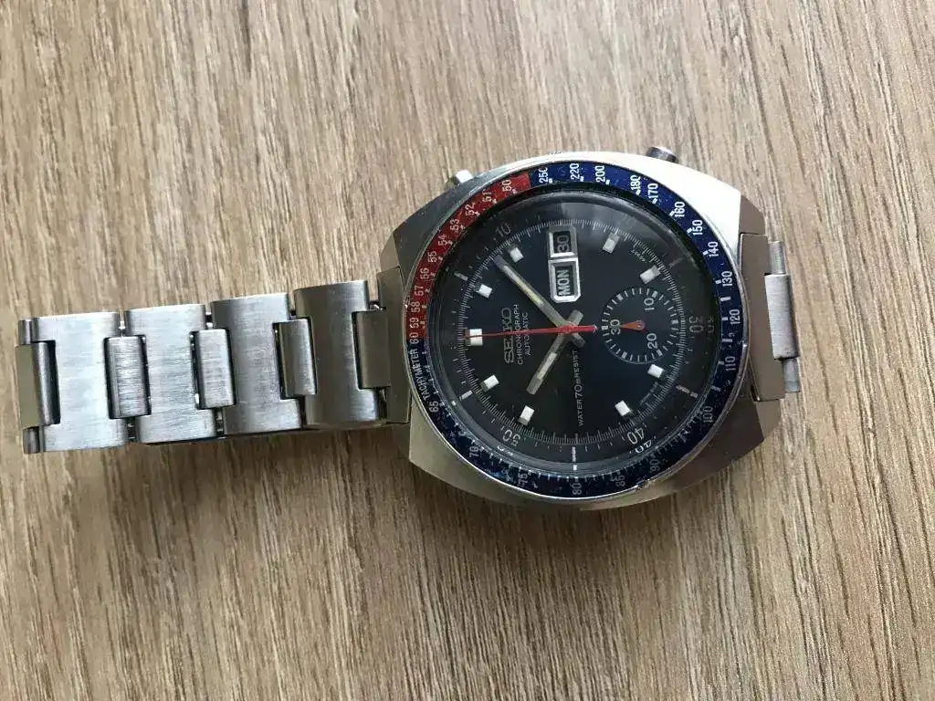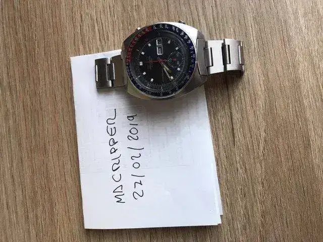 Pongo a la venta este Seiko 6139 6002. Funciona perfectamente. Es de febrero de 1971. La corona no es original, pero el anillo interior gira, y hace su función correctamente.