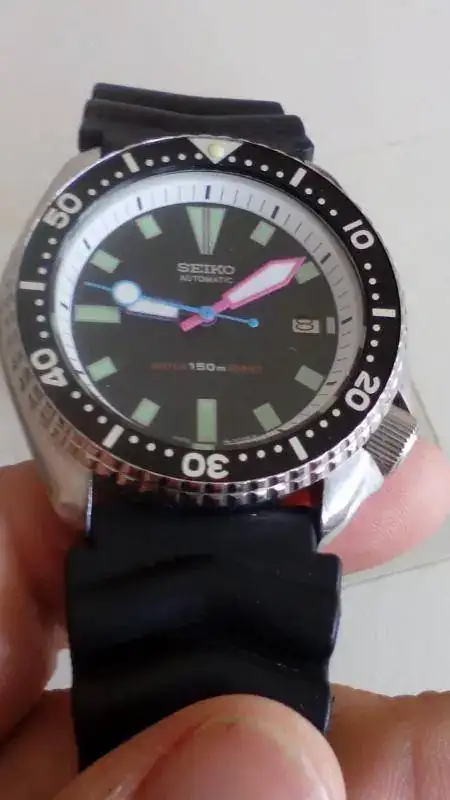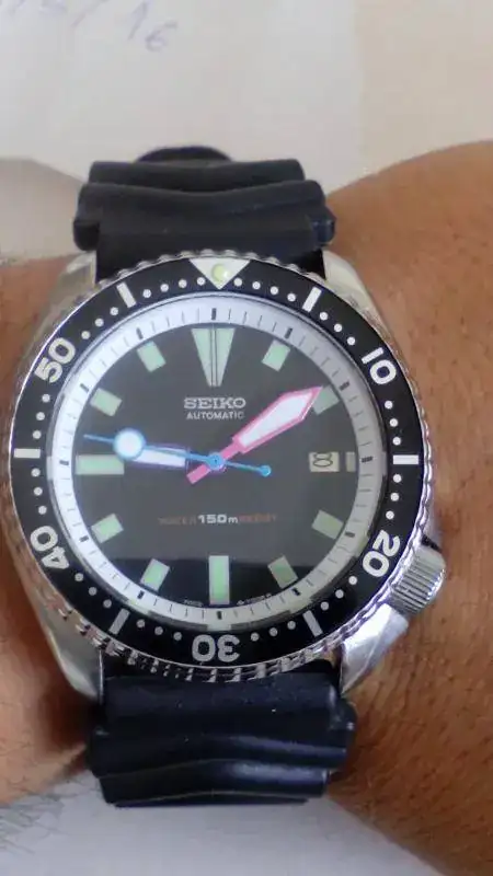 Seiko 7002 diver scuba 150 metros modificado, agujas y bisel .El reloj presenta un pequeño picotazo que intento sacar en la foto ,por lo general el reloj esta en buen estado,algunas marcas de uso ....