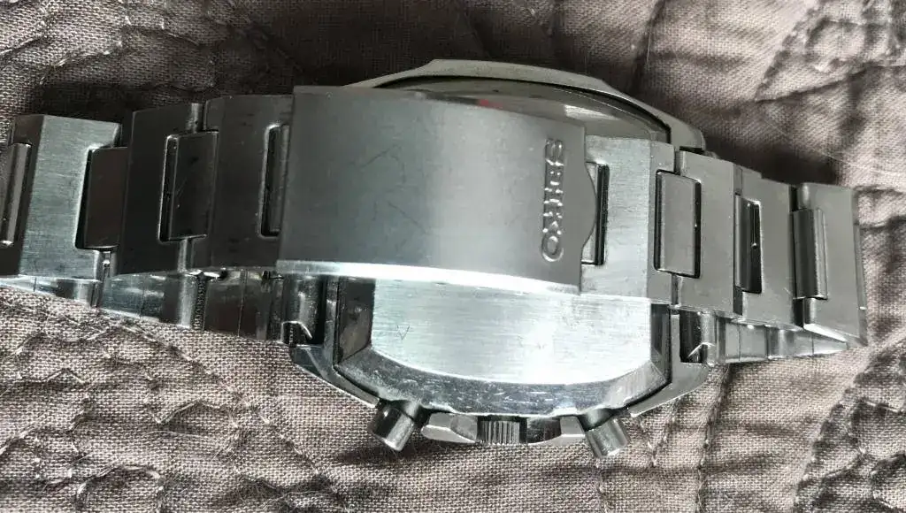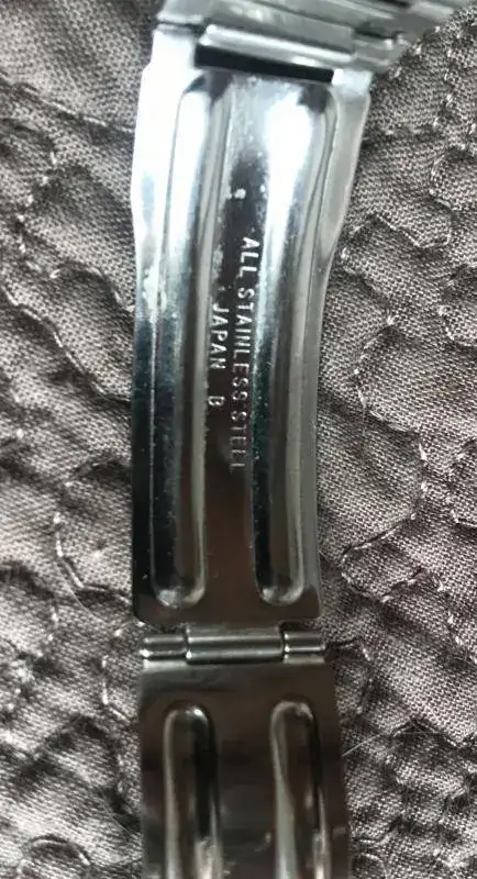 El brazalete viene firmado "made in japan" y ademas como se observará en las fotos el cierre es de todo cepillado y no pulido, lo que demuestra el poco uso que ha tenido. todos los que veréis en el cierre se suele ver o muy rallado o pulido a espejo, este no, con las letras de seiko en relieve perfectamente marcadas.
