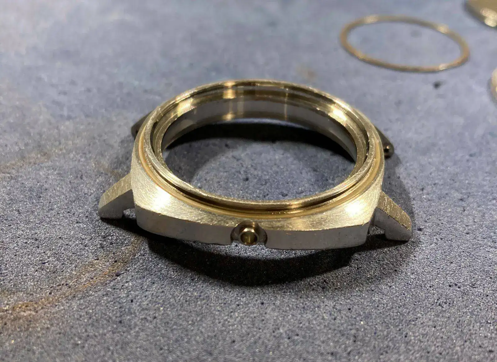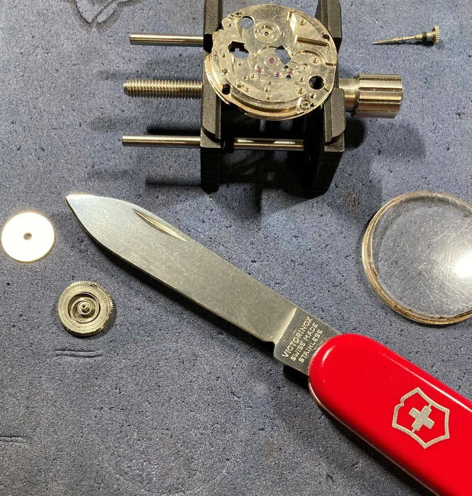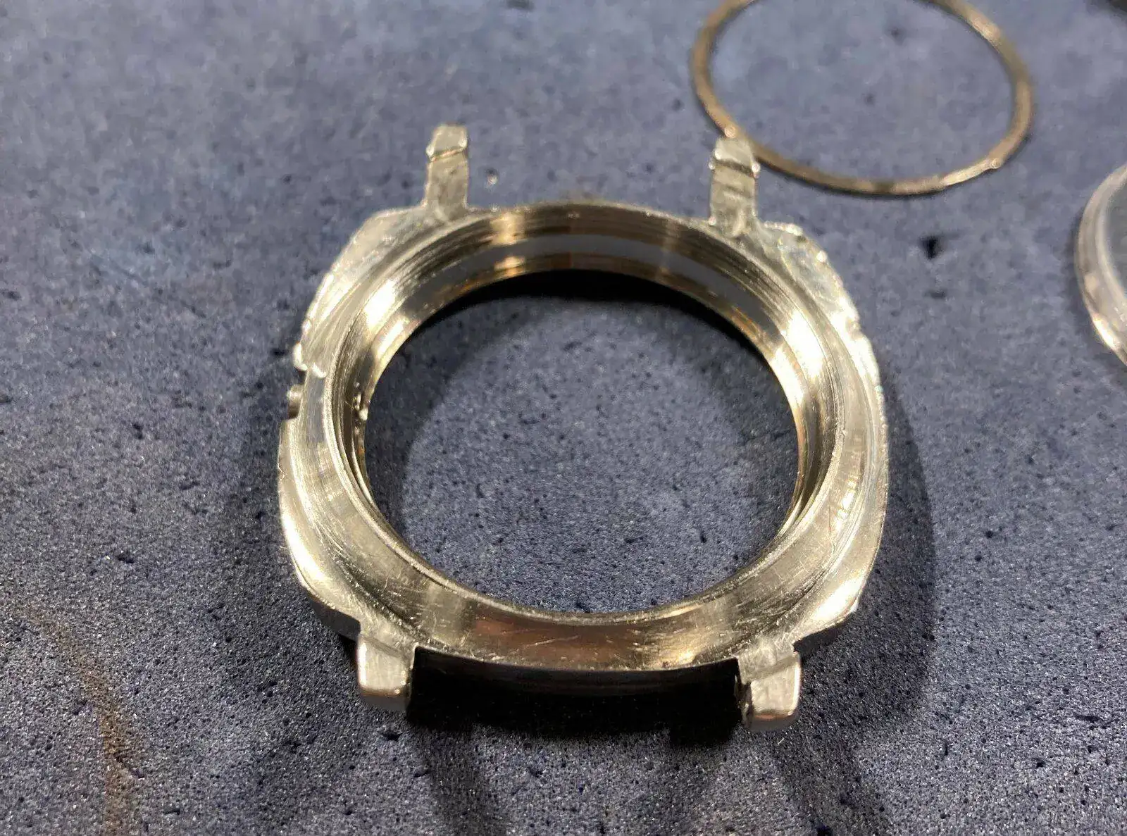 Una vez todo el movimiento desmontado y limpiado, comienzo con la limpieza de la caja. Para la limpieza de la caja así como de los componentes del movimiento, utilizo en primer lugar una limpieza con brocha y líquido de limpieza (lavavajillas+amoniaco+agua), limpieza con ultrasonido con el mismo liquido de limpieza, enjuague en agua destilada y ultrasonido con alcohol isopropílico.