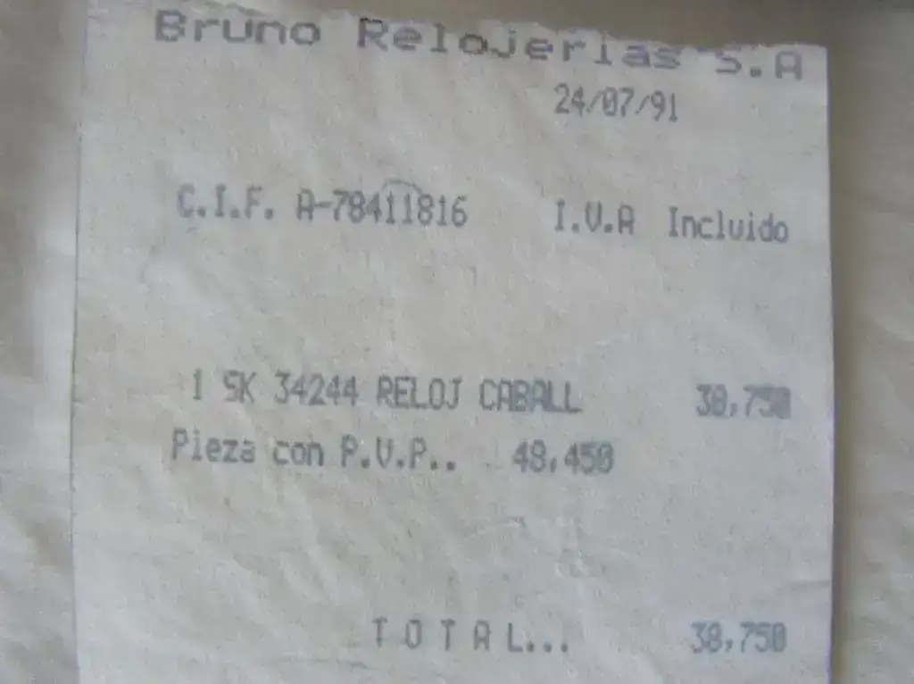 Fue un regalo; mi primer "gran reloj" y valia, PVP 48.458 pesetas, pero se quedo en 38.750, que seguia siendo dinero para aquellos años...
