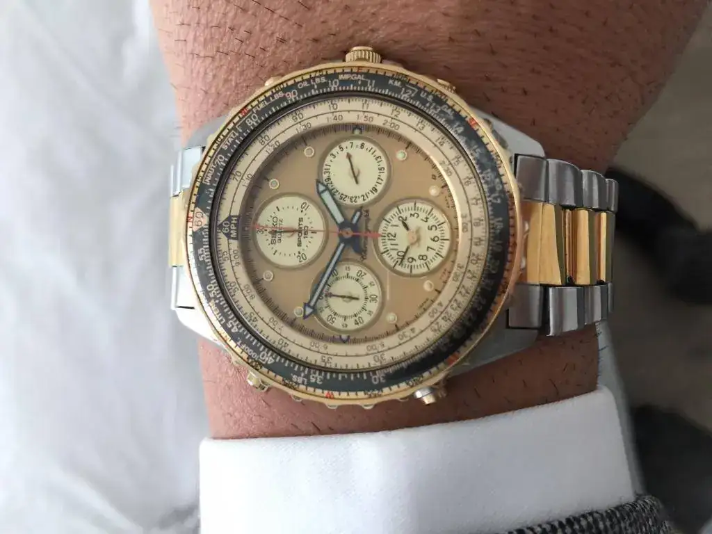 El reloj solo ha tenido un dueño y funciona perfectamente y está bien conservado. En el anillo de medidas a las 5:25 tiene una pequeña marca (ver foto) y el cierre tiene marcas de uso. La pila es nueva.