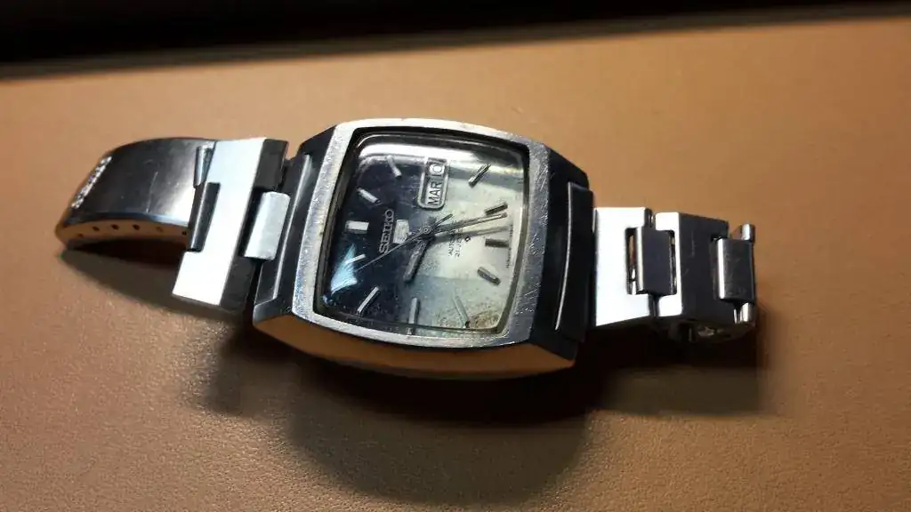 Hola a todos de nuevo. Este Seiko serie 5 8025-8030 es mi primer Seiko, de allá por finales de los setenta quizás, pero no se datarlo. Agradecería información al respecto. Desde entonces lo tengo en uso a temporadas y creo que solo pasó una vez por el relojero y fue por el cristal roto. Acerca de esto, una consulta: el cristal original era un biselado precioso, pero al cambiarlo por rotura, hace pocos años, me dijerpn que no era posible encontrar el recambio y me pusiero uno "abombado" que se adapta de manera relativa a la caja, ya que tiene esquinas redondeadas y la caja las tenía rectas. La única forma de encontarr un cristal de recambio sería rebuscar uno igual averiado y canibalizarlo,,, imagino... O hay algún especialista en recambios asi? Gracias y saludos