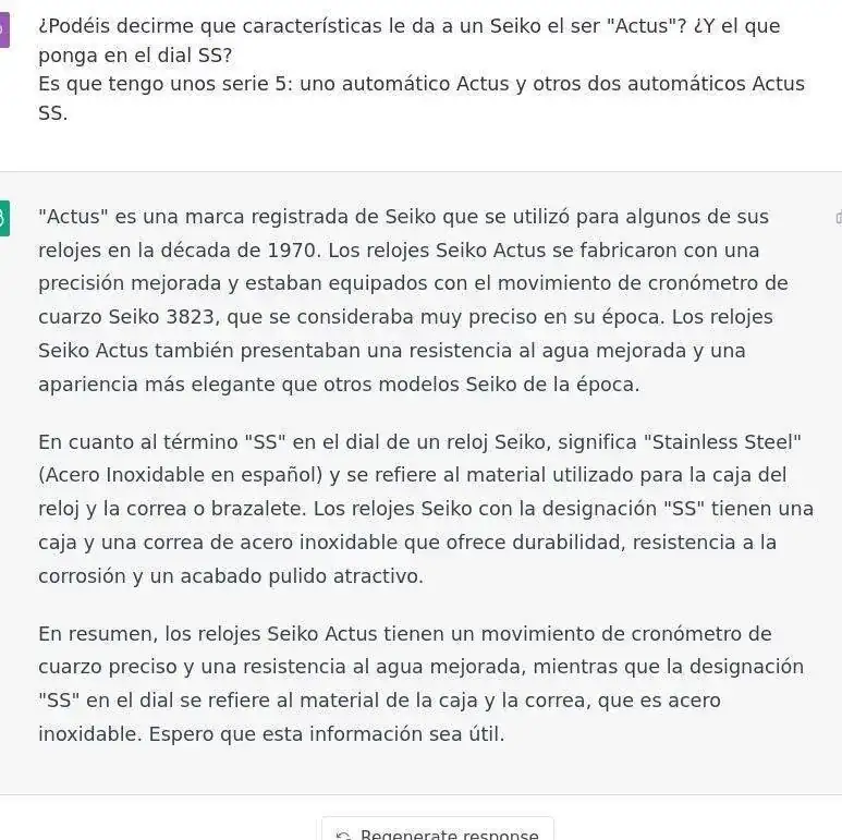 ¿Podéis decirme que características le da a un Seiko el ser "Actus"? ¿Y el que ponga en el dial SS?
