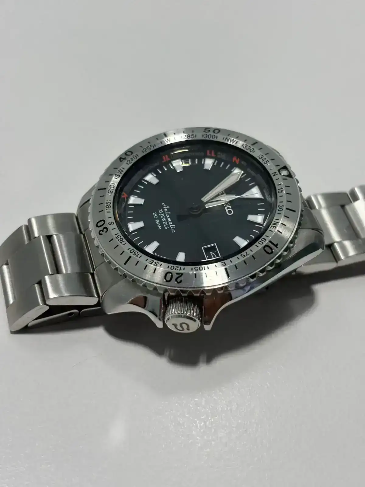 El reloj va perfecto de marcha (en unos +10sg/día) y la reserva de marcha es la habitual de este movimiento, cerca de dos días. En cuanto al estado general la caja y cristal están en muy buenas condiciones. El armis tiene las marcas superficiales de uso habituales, algo que tiene fácil remedio. El cierre lo sustituí por uno original seiko de 4 puntos, pero conservo el original de 2 puntos.