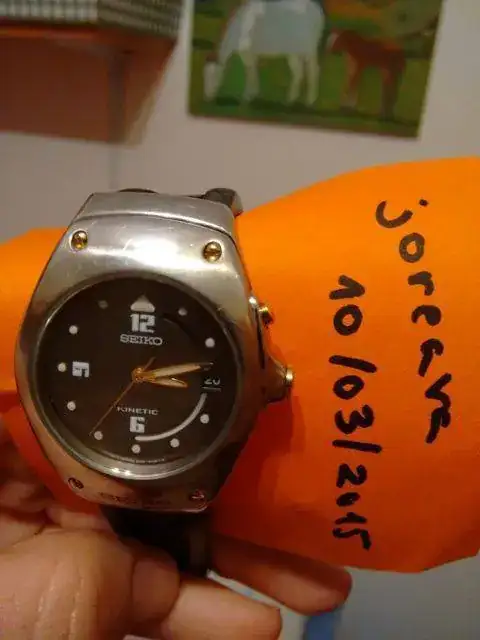 El reloj tiene marcas evidentes de uso, nada que no pueda arreglar un cepillado si os gusta llevarlo impoluto, yo no lo veo tan castigado para eso, pero bueno, cada uno es cada uno. La correa no es la original, (por desgracia), a mí me vino ya así, pero a día de hoy todavía pueden encontrarse la que lleva de casa por internet. Por ultimo resaltar que el acumulador no está demasiado alto de carga, es decir, cuando te lo quitas, no aguanta días como un Kinetic normal, tiene sus limitaciones. Nada que no pueda areglarse cambiandolo en el SAT por no mucho dinero.