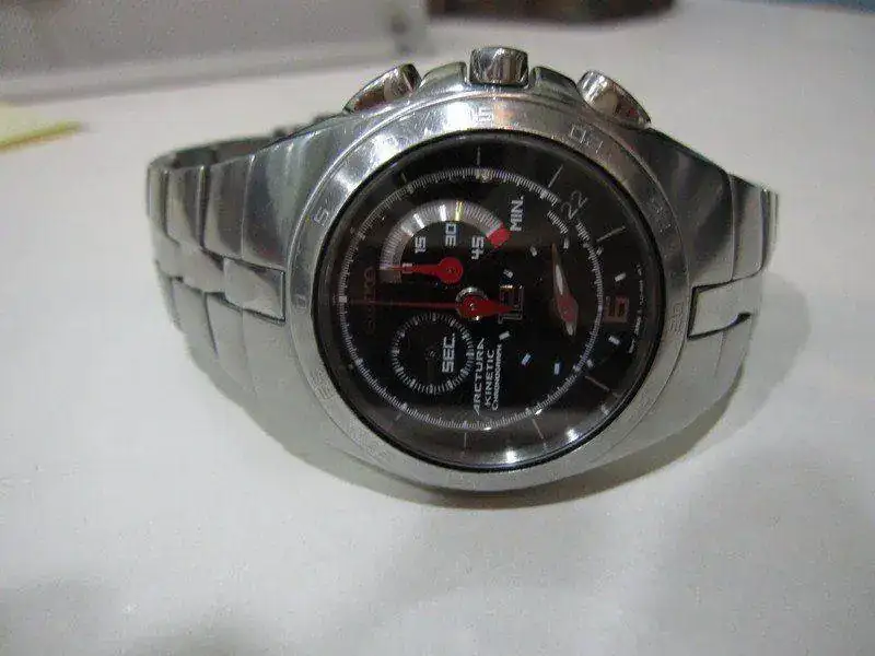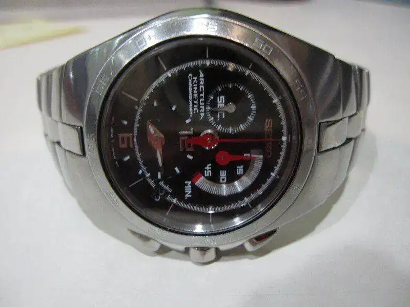 Para hacer caja, que se me ha cruzado una pieza mayor, pongo a la venta este fantástico SEIKO ARCTURA KINETIC CRONÓGRAFO, precioso reloj con cristal de zafiro cuyo precio de venta original rondaba los 470 euros. El reloj se encuentra en un estado de funcionamiento perfecto, su uso ha sido muy cuidado, el cristal está inmaculado, sin la menor marca, eso sí, al ser un reloj con acabado pulido en muchas de sus zonas presenta las típicas microrayitas ya que, aunque como decía su uso ha sido muy cuidado, sí ha sido utilizado.