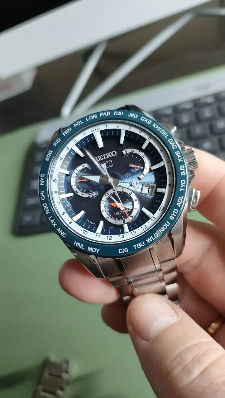 Por vaciar caja, Vendo precioso Seiko Astron en una de sus combinaciones más bonitas, el reloj esta Impoluto, me lo habré puesto unas 6 veces, no dispongo ni de la caja, ni documentación por eso su precio. Creo recordar que el precio nuevo rondaba los 1.600€. Unos impresionantes acabados para un reloj que es una autentica maravilla. El calibre que lleva es el 8X53. Cualquier pregunta o aclaración estaré encantado de responderos.