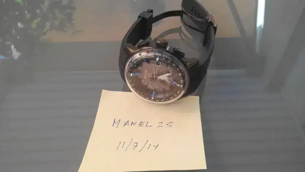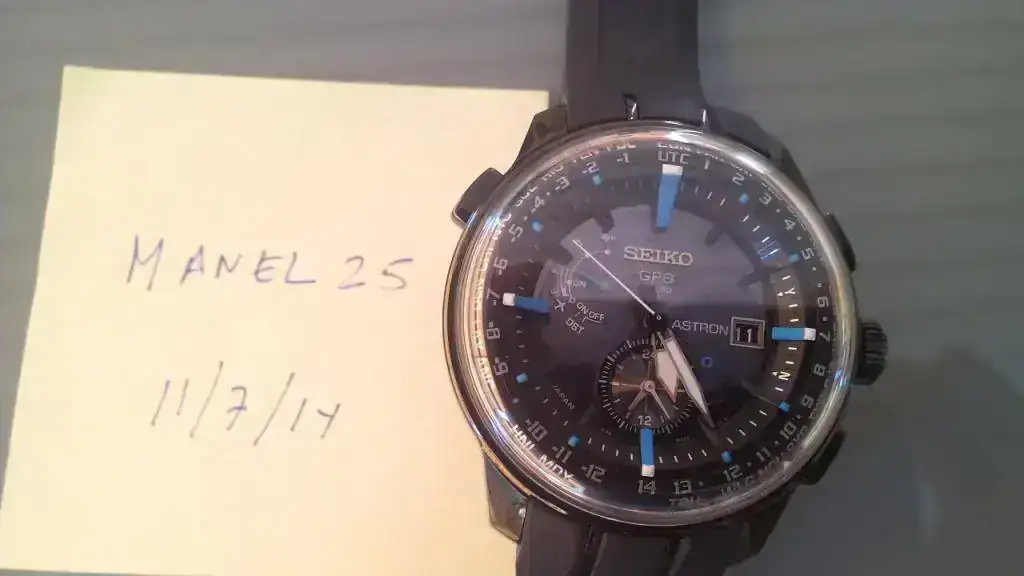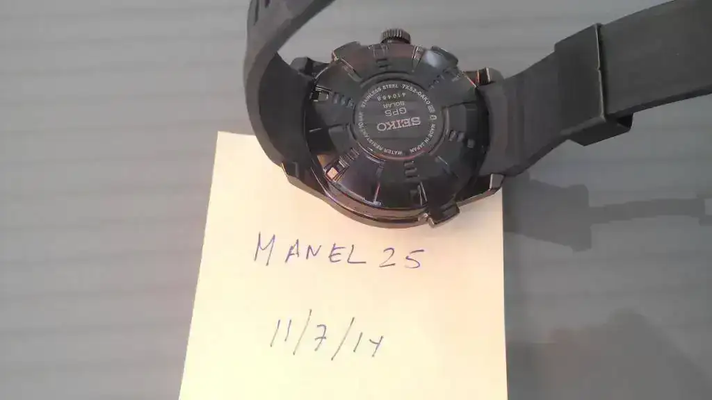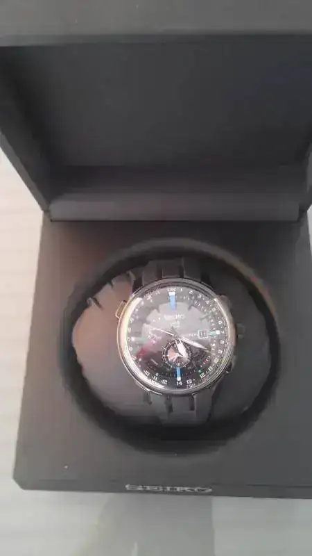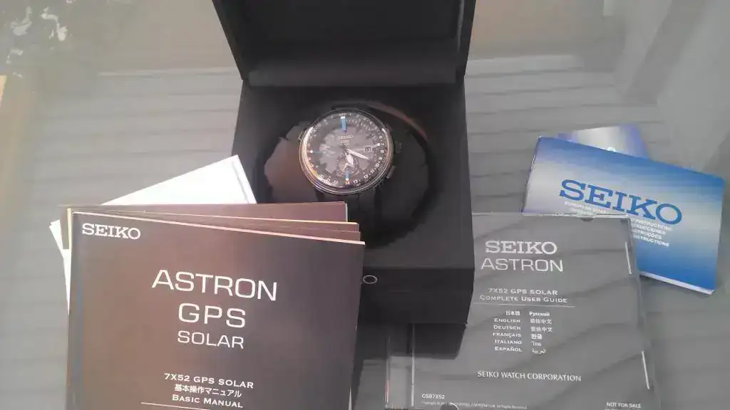Movimiento: Cuarzo Seiko 7X52 Solar. El GPS controla el ajuste de hora y zona horaria. Agujas de hora, minuto y segundo. Calendario Perpetuo exacto hasta febrero de 2100. Indicación de resultado de recepción de señal GPS. Función de hora mundial (39 Zonas Horarias). Modo vuelo. Función de hora de verano. Función de ahorro de energía. Precisión: +/- 15 segundos por mes.