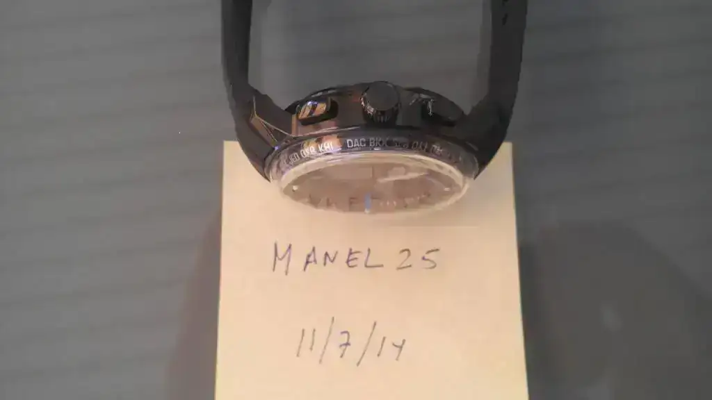 Caja:Caja de acero con revestiviento negro endurecido. Cristal de zafiro con anti-reflejo con forma abovedada.
