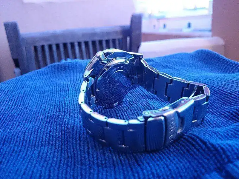 Tiene las tipicas microrayaduras en el armis por uso , y otro par en la esfera a la altura de las seis. Pero está en buen estado y va fino. Si alguien necesita más fotos, no dude en pedirlas.