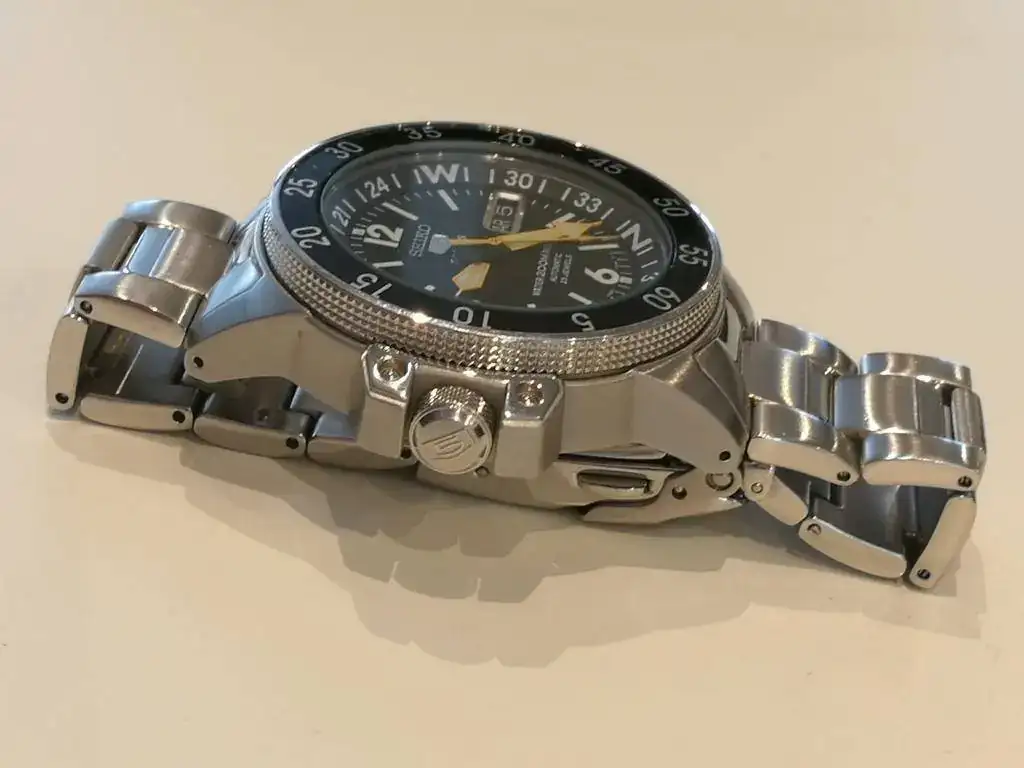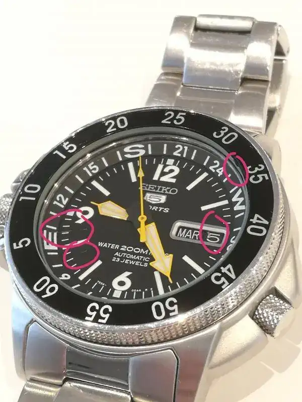 El movimiento va muy muy preciso. Se aprecian signos de uso, que detallo en las fotos. Eslabones arañazos donde apoya la mano (incluyo 4 nuevos que pueden sustituirlos), 1 micro ralla cristal (también en foto, solo se ve al reflejo) y una muesquita entre cristal y bisel, no afecta a estanqueidad porque he buceando en octubre con el y lo mojo siempre.