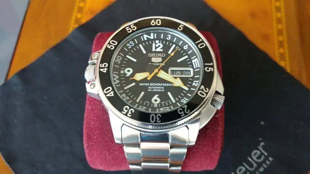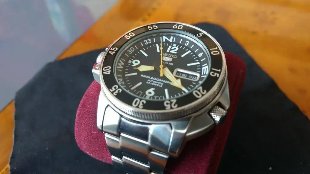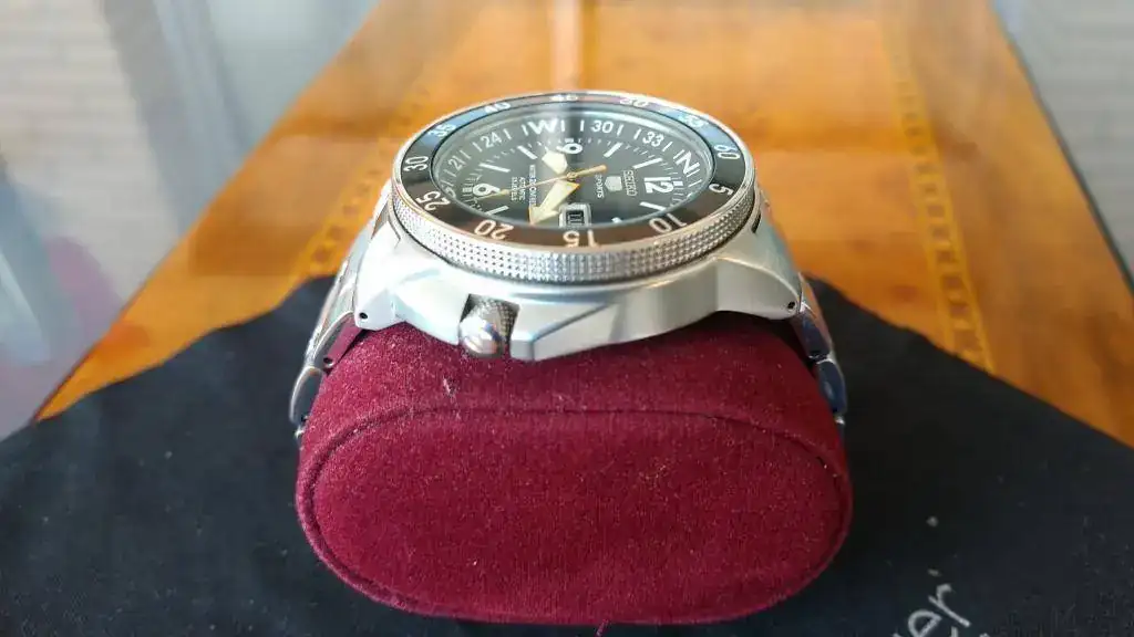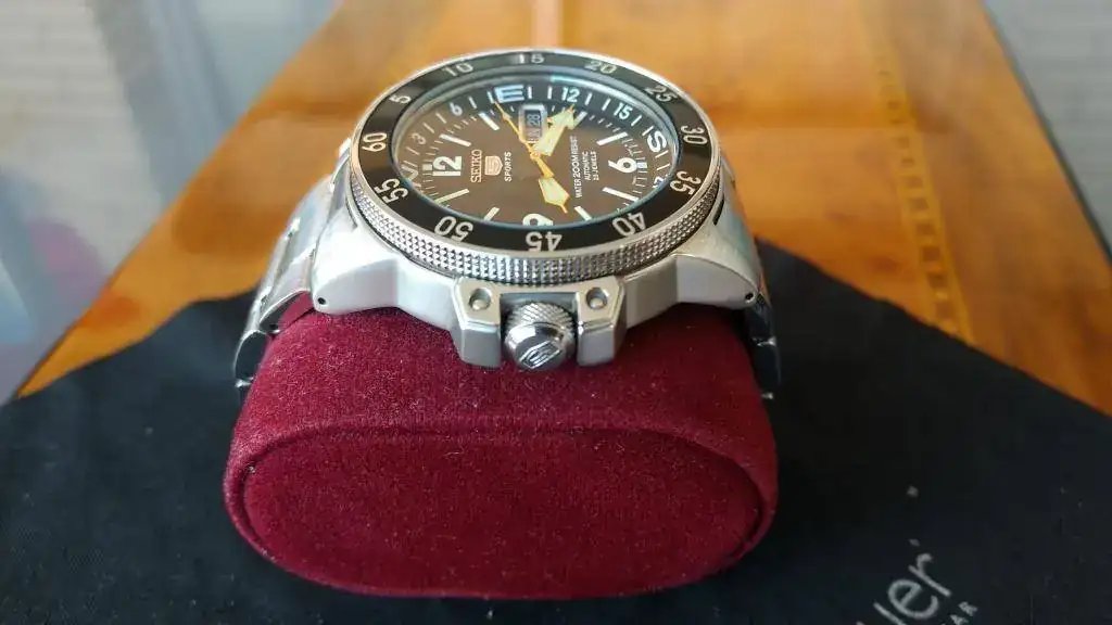 Saco a la venta, no sin cierto remordimiento porque la verdad hace ya bastante tiempo que lo tengo y siempre me ha gustado, el conocido como Seiko Atlas. La norma autoimpuesta que para que entre uno nuevo primero tenga que salir otro, hace que lo ponga a la venta, ya que prácticamente no lo uso. El reloj por tanto es usado, pero en muy buen estado como podréis ver en las fotos. No presenta ninguna marca ni en caja, ni bisel ni vidrio (si veis algo es el dichoso polvo). El armis sí presenta las típicas marcas de uso, pero ningún golpe o marca profunda.