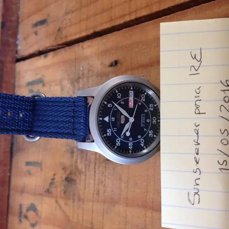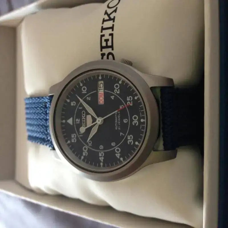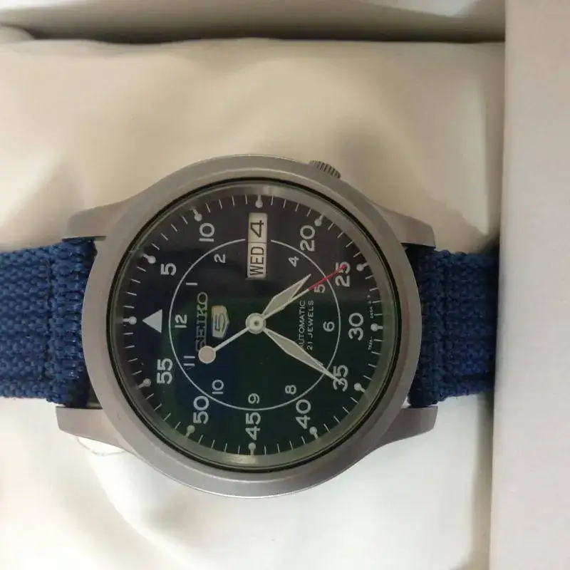 Procedente de un cambio ofrezco este Seiko automático military de 37 mm con correa de nylon y estado nuevo, diría que no ha sido estrenado ya que no le encuentro ninguna señal de uso.