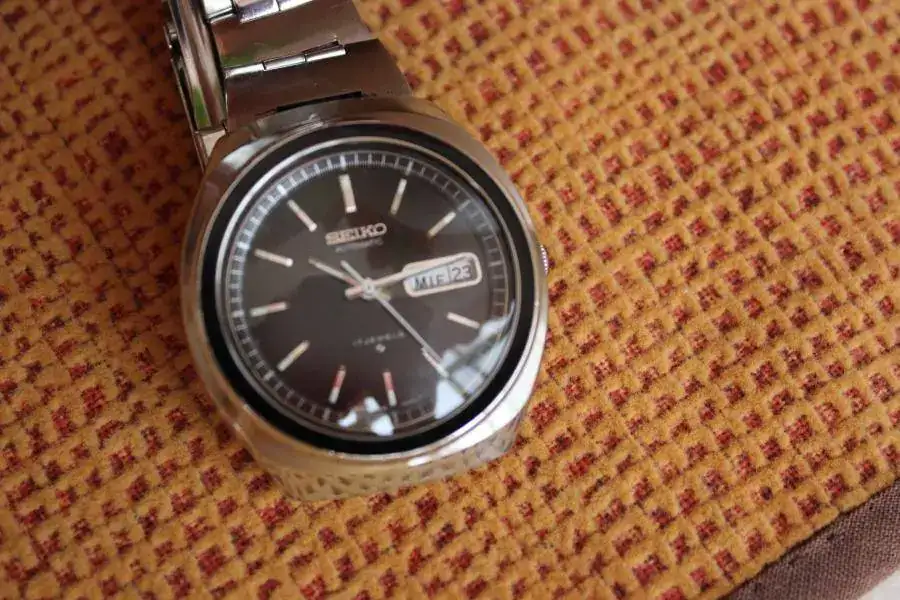 Seiko movimiento automático 6309 - 6000 con 17 rubís, caja de acero inoxidable, de 40 x 43 sin corona, día de la semana y mes a las tres, pase rápido, todo original, excepto el cristal que es nuevo, la corre vale para muñecas de 18 o 19, El reloj se encuentra en buenas condiciones estéticas, espero que se pueda apreciar en las fotos.