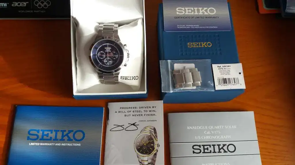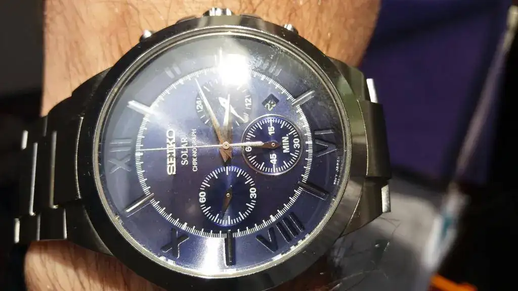 El primero es un Seiko solar poco visto en el foro, funciona perfecto, tiene un año y medio solo y aunque está usado (para eso se compro y bien a gusto que lo he tenido) está muy bien.
