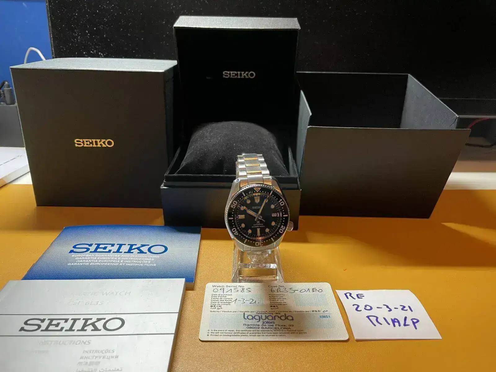 Vendo este magnífico reloj Seiko Baby Marine master 200 que salió al mercado recientemente. Reloj comprado nuevo por mi en relojeria Laguarda de Bcn el pasado 1 marzo 2021 , impecable, 5 puestas, full set y garantia de 23 meses.