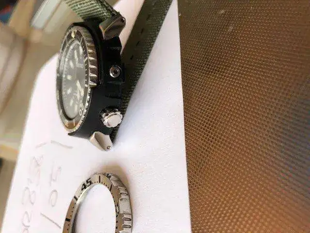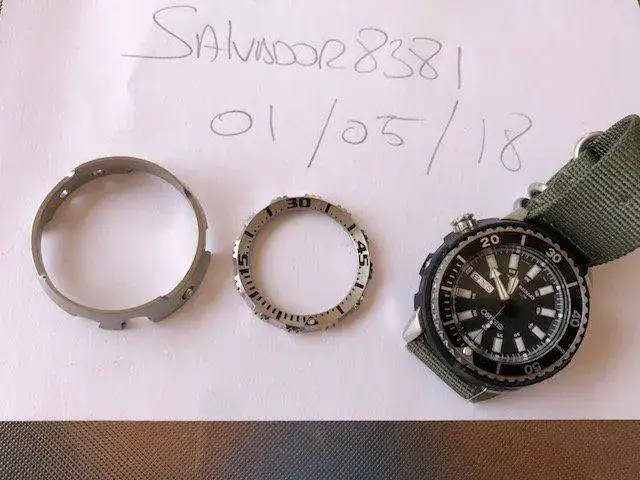 Tiene de dotación extra el sudario en negro de caucho y un bisel con su inserta nuevo en las fotos se ve bien
