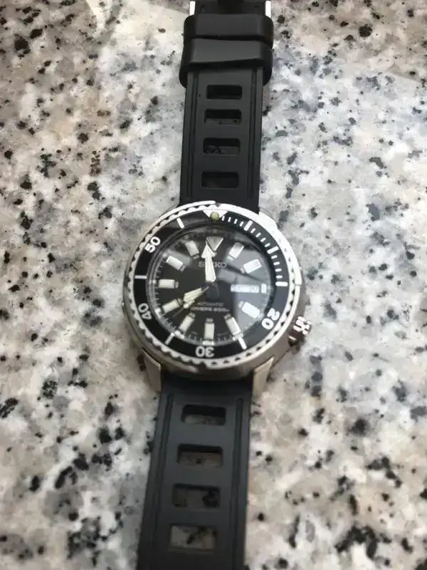 Buenas noches, saco a la venta este Seiko baby Tuna que fue comprado en el foro hace unos meses. El reloj tiene caja pero no papeles pues lo compre así. Lleva como extras un sudario en negro caucho y un bisel. Lo vendo por el mismo precio que lo adquirí