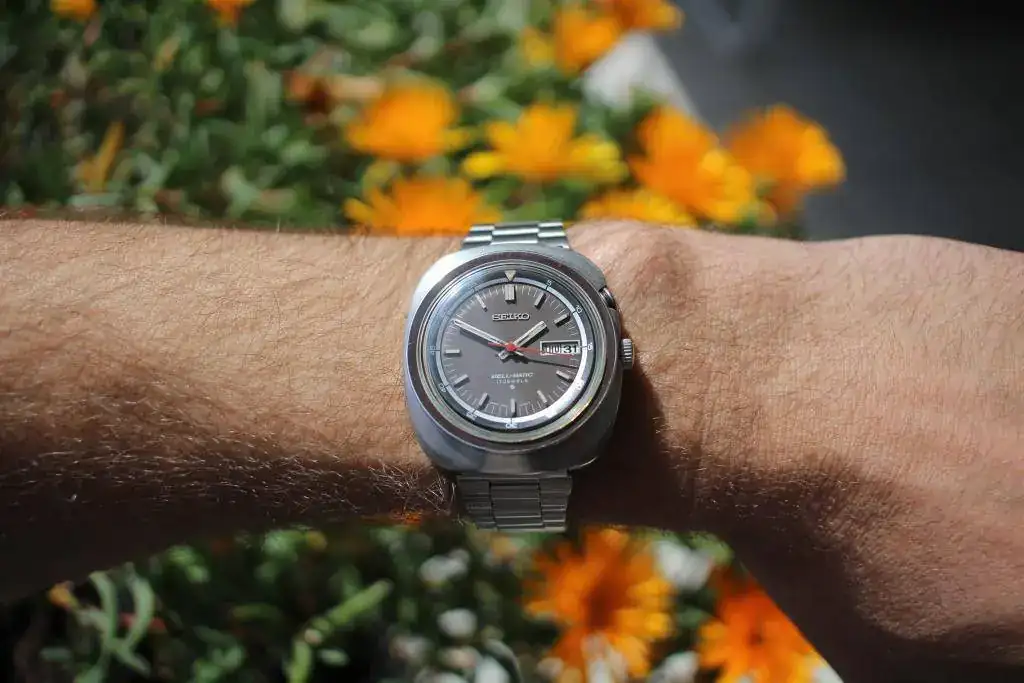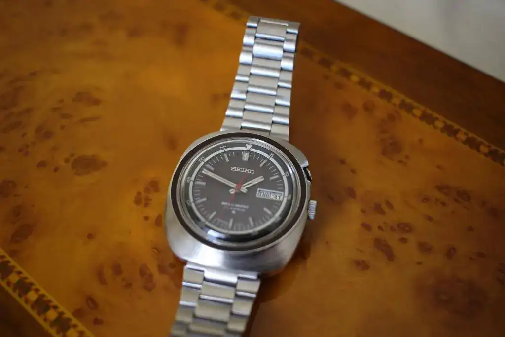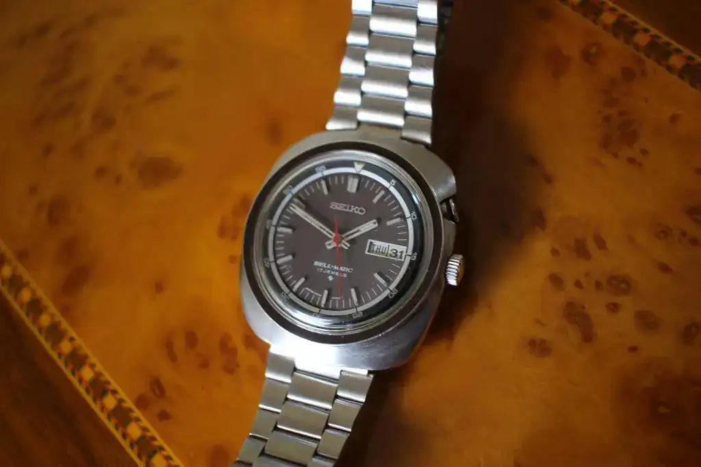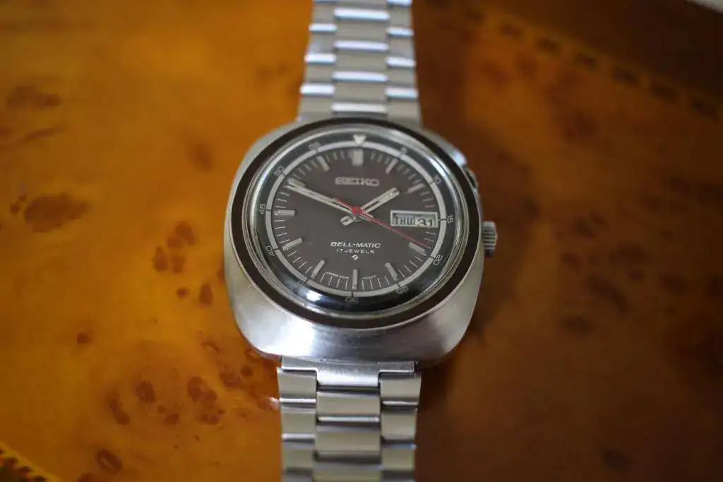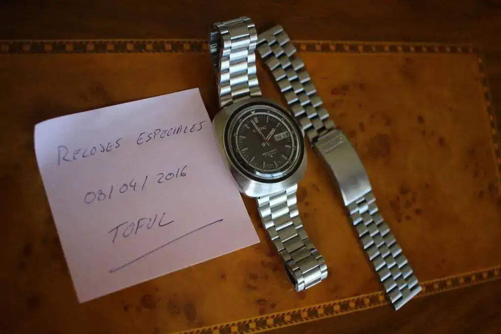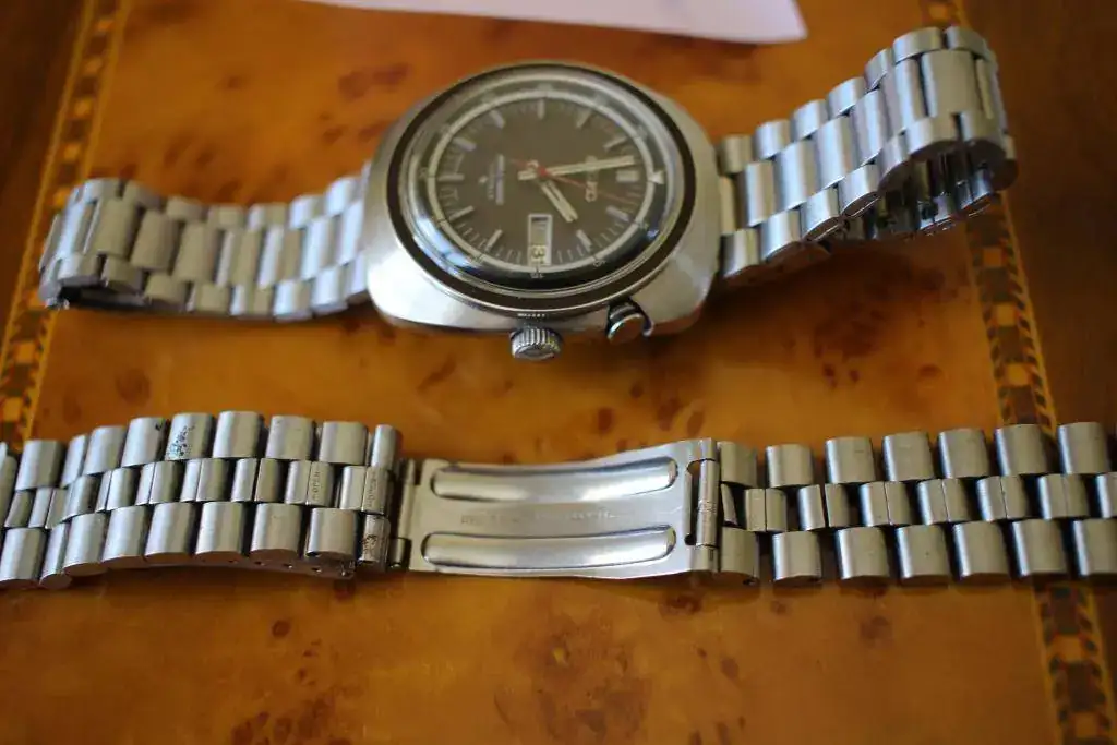 Por reestructuración de colección saco a la venta este bonito Bell-matic 4006-6020 de febrero de 1971. El reloj se encuentra en buen estado tal como se aprecia en las fotos y mantiene la marcha correctamente. Como sabéis se trata de un movmiento automático con alarma mecánica Se entrega con el armis que le veis puesto en las fotos junto a su armis original (que tiene bastante holgura). El que lleva puesto está ajustado para una muñeca de unos 16-17 y se entrega con tres eslabones más sueltos. Pese a su antigüedad se trata de un modelo que se puede llevar perfectamente hoy día sin que se vea pequeño, ya que mide 39mm sin contar corona x 43mm. La esfera es un marrón chocolate con un efecto más claro cuando le da la luz del sol, a mi me gusta mucho.