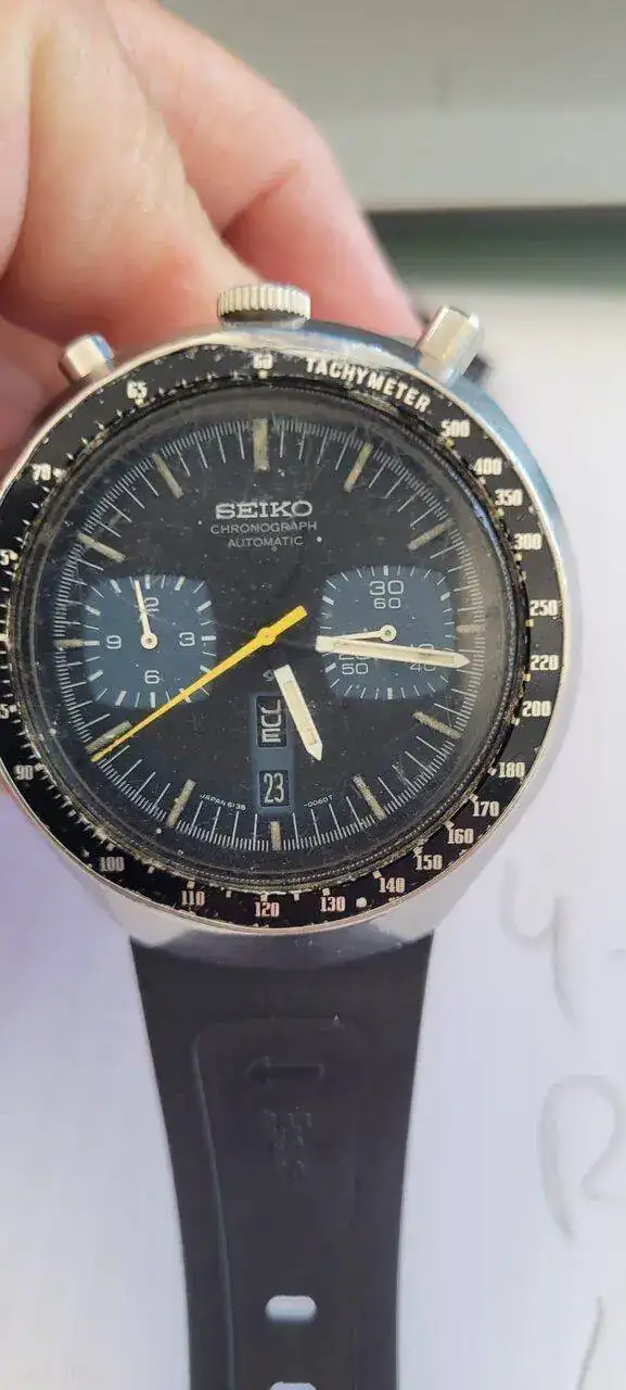 Buenas tardes, en esta ocasión saco este conocido reloj por todos nosotros procedente de un cambio, el reloj mantiene la hora y esta funcionando, las saetas de los cronógrafos también funcionan, el calendario funciona, ahora bien los pulsadores no funcionan, por lo que funcionan todas las saetas, el bisel presenta un golpe a la altura de tachymeter, y la corona se sale, es decir que funciona pero tiene que ir al taller.