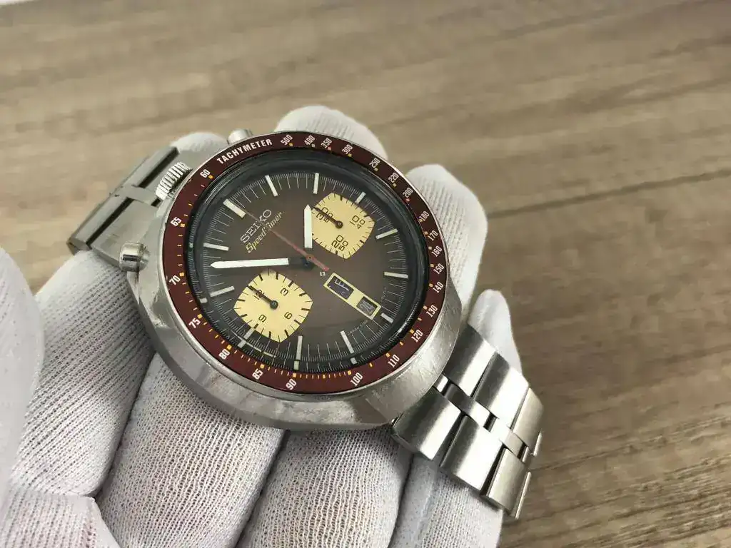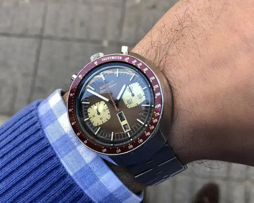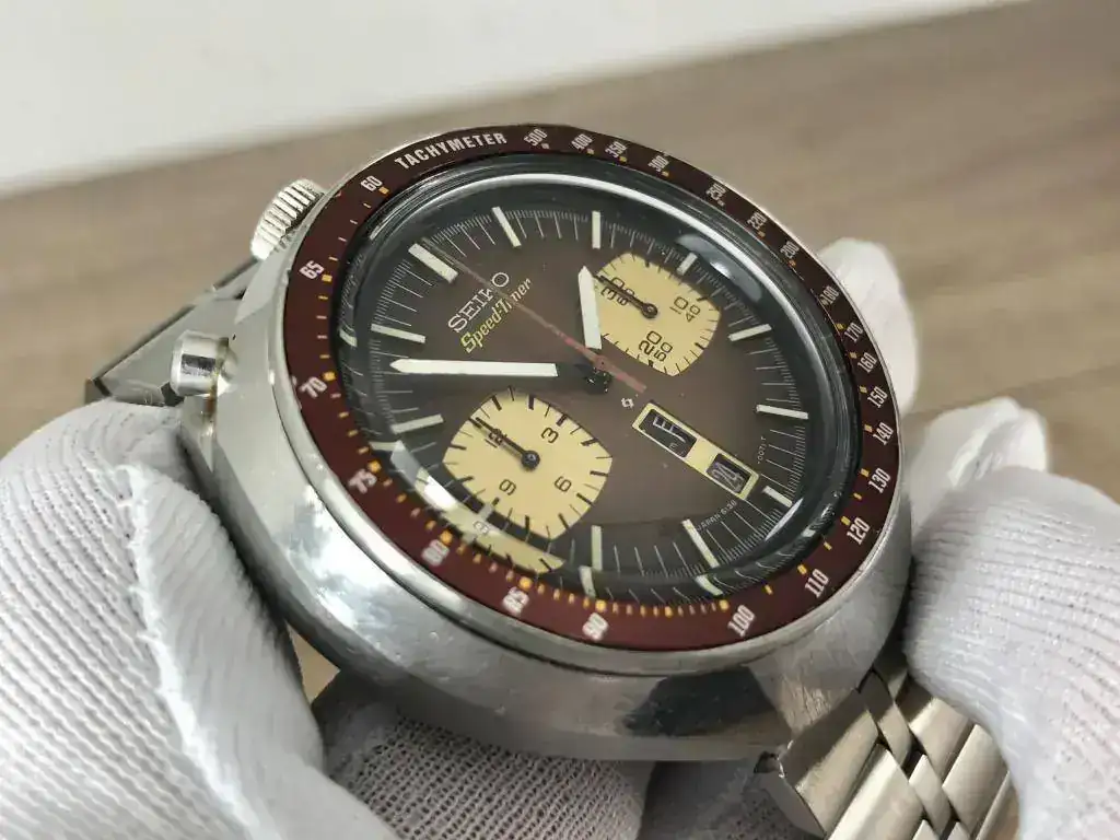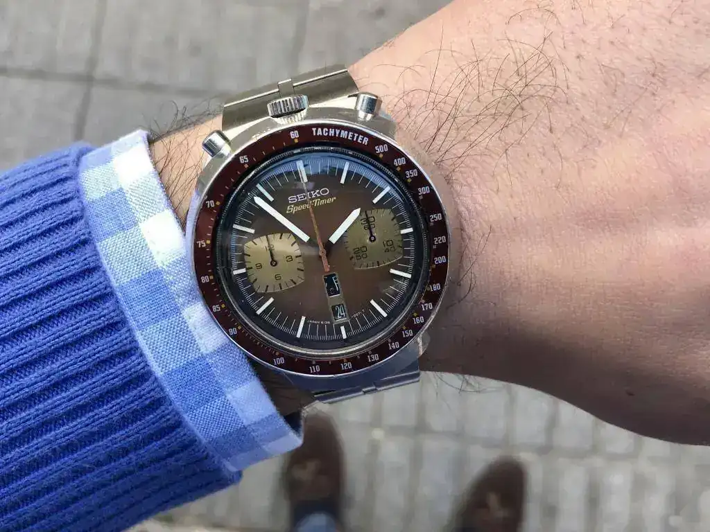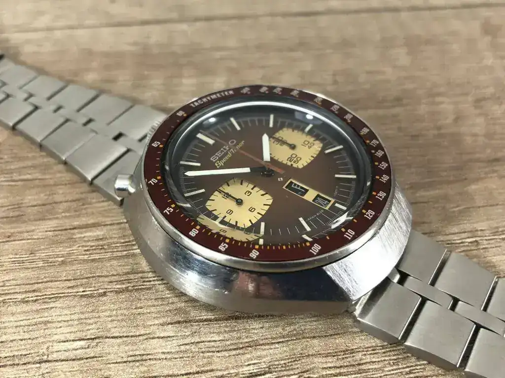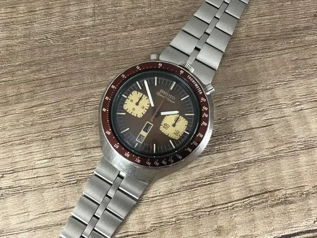 Buenas, saco a la venta este espectacular y conocido Seiko Bullehad es su versión Speedtimer. EL reloj tiene todo original de serie y es de 1976. El reloj obviamente tiene sus marcas de uso pero esta en buen estado, sobre todo el brazalete, nunca ha sido pulido.