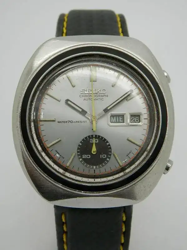 Continúo con la criba de japos setenteros. No caben todos. Esta vez le toca a un Seiko cronógrafo 6139-8002. Está en un estado muy razonable. La correa es nueva y al verlo con ella me he pensado un par de veces si sacarlo...