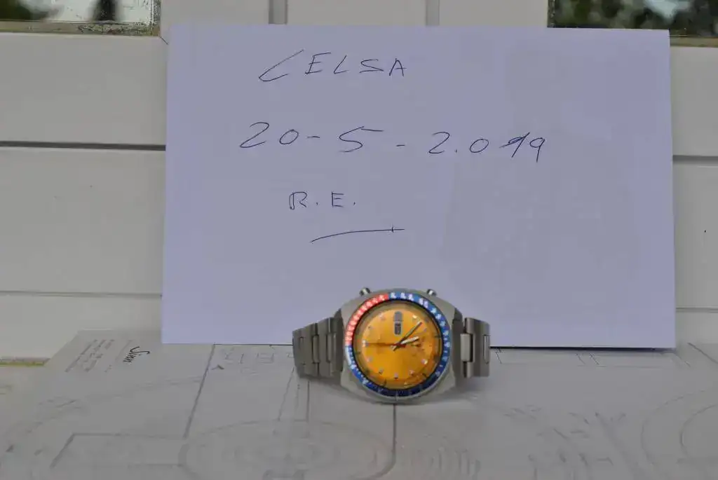 Estéticamente está cuasi perfecto. Todo original excepto el bisel del taquimetro. Esto me lo contó mi relojero y amigo Francis de Tarancón. El mismo le hizo un service detallado y completo. Por lo tanto, el que se lleve el reloj, tiene la garantía personal mía, que a la vez es de Francis de Tarancón, de que todo funciona cómo debe ser.