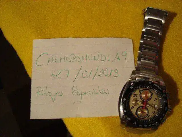 cristal: Tiene una pequeño arañazo a la altura de la esfera de los minutos, he intentado sacar sacar en una de las fotos que he puesto, pero si no te fijas mucho no se ve.