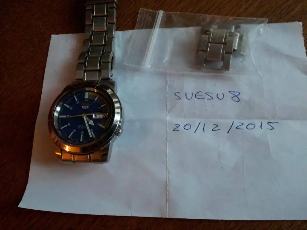 Saco a la venta este seiko. Está en muy buen estado porque ha tenido poco uso. Adjunto los eslabones que se le quitaron del armis para ajustarlo a mi muñeca. Funciona perfectamente y sólo tiene las típicas marquitas en el cierre. No tiene caja ni papeles, pero se enviará debidamente protegido por correos certificado incluido en el precio. Las fotos