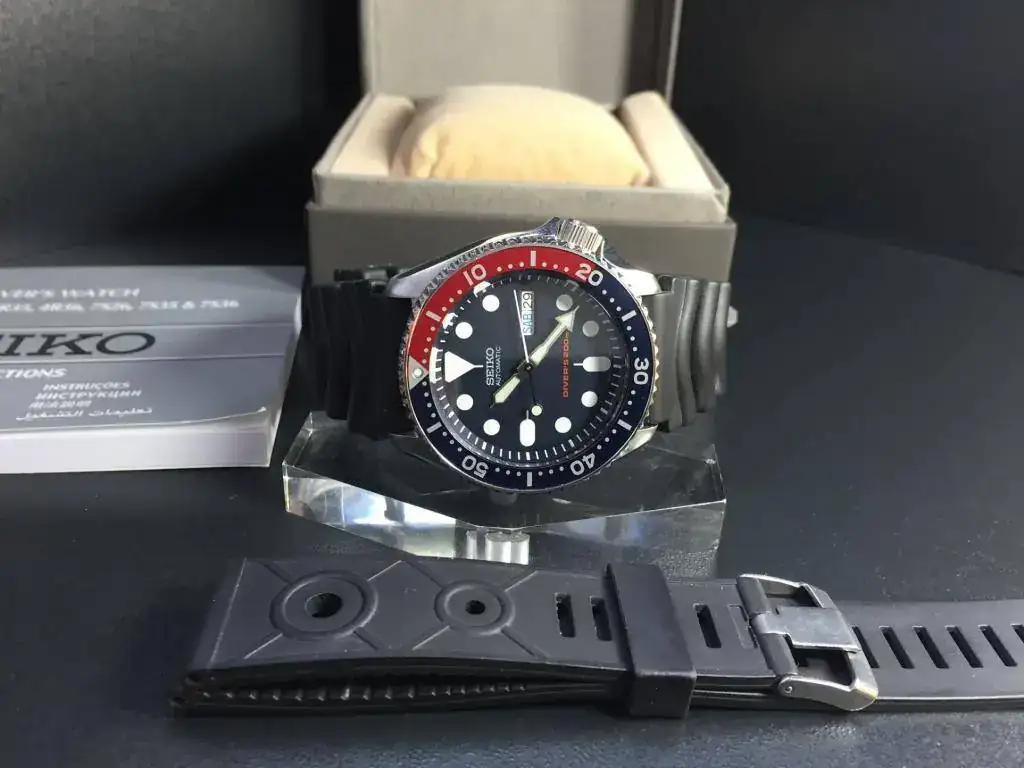 Buenas tardes, saco a la venta este precioso diver seiko del año 2014 en su condición de origen totalmente, el reloj funciona a la perfección y no ha sido usado tan apenas, tanto la correa original seiko como la bonetto centurini de 60€ que le compre aparte estan nuevas practicamente.