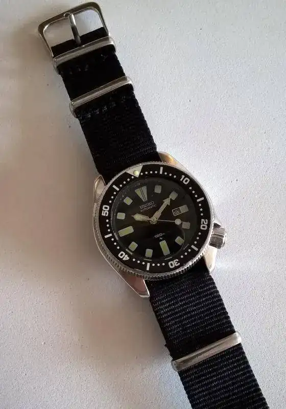 En cuanto al estado del rejoj, la caja apenas tiene marcas de uso. En el cristal no se ve ninguna marca. El dial y las agujas, seguramente son aftermarket (llegó de filipinas, y la inscripción de modelo en el dial acaba en 108R), en cualquier caso están en muy buen estado y tienen lumen. El bisel (no sé si en las fotos se ve pero el borde es del estilo moneda) sí que tiene varias marcas, al igual que el insert y la corona.