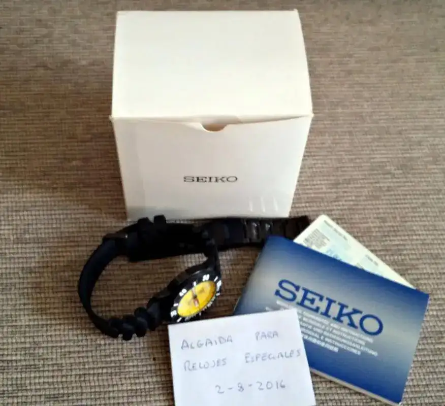 Vendo este precioso diver de Seiko,ideal para este periodo de verano y de playa. Está de reestreno pues ha estado guardado en una vitrina de mi colección personal, prácticamente siempre, por tanto ninguna anomalía que reseñar. Viene con correa de caucho y armis de acero negro. El armis aún conserva sus precintos plásticos pues nunca ha sido montado.