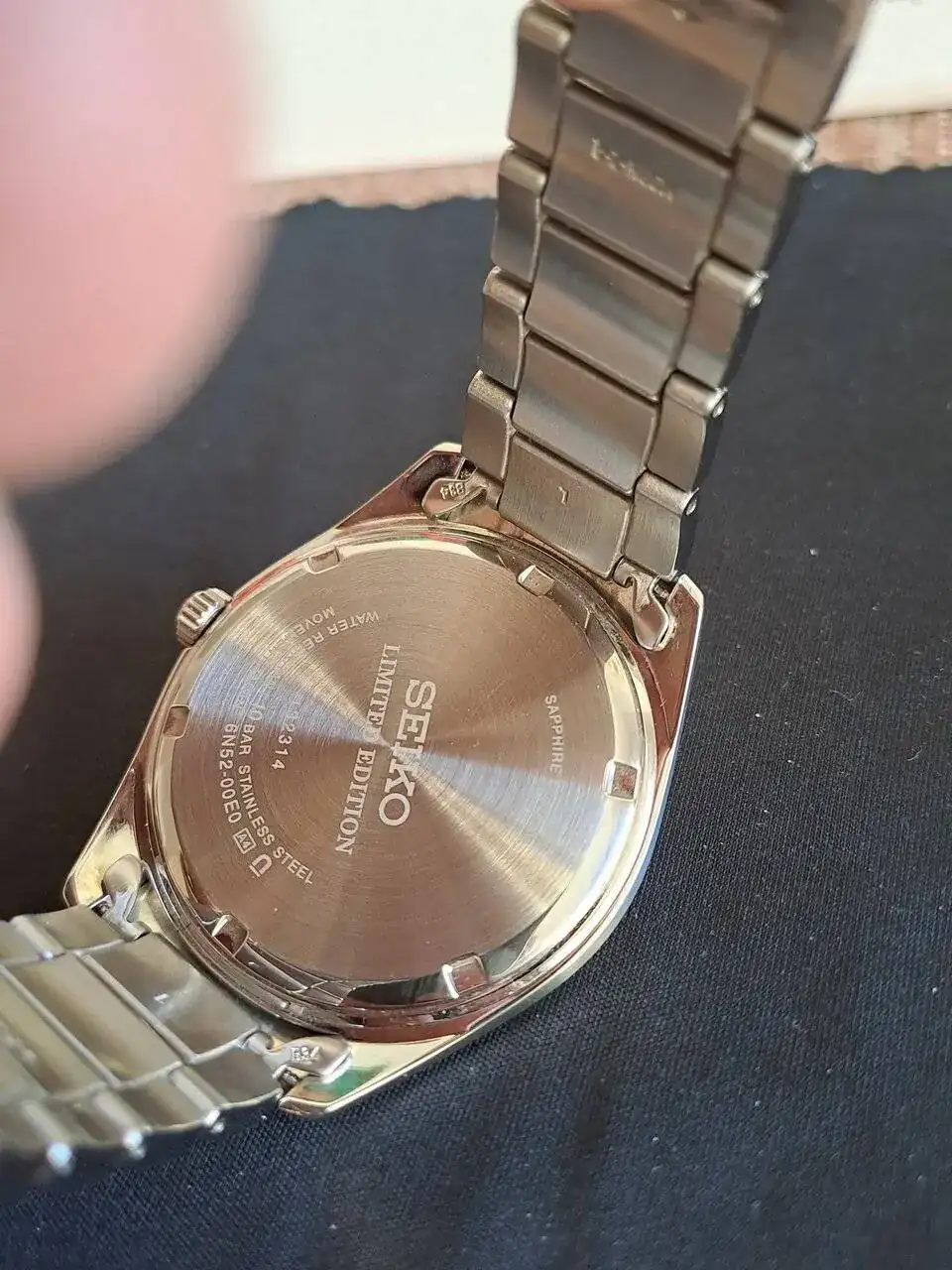 Esta versión al ser limitada tiene de distinto de los convencionales seiko SUR las agujas , y el aro interior azul marino, a parte del grabado de la trasera.