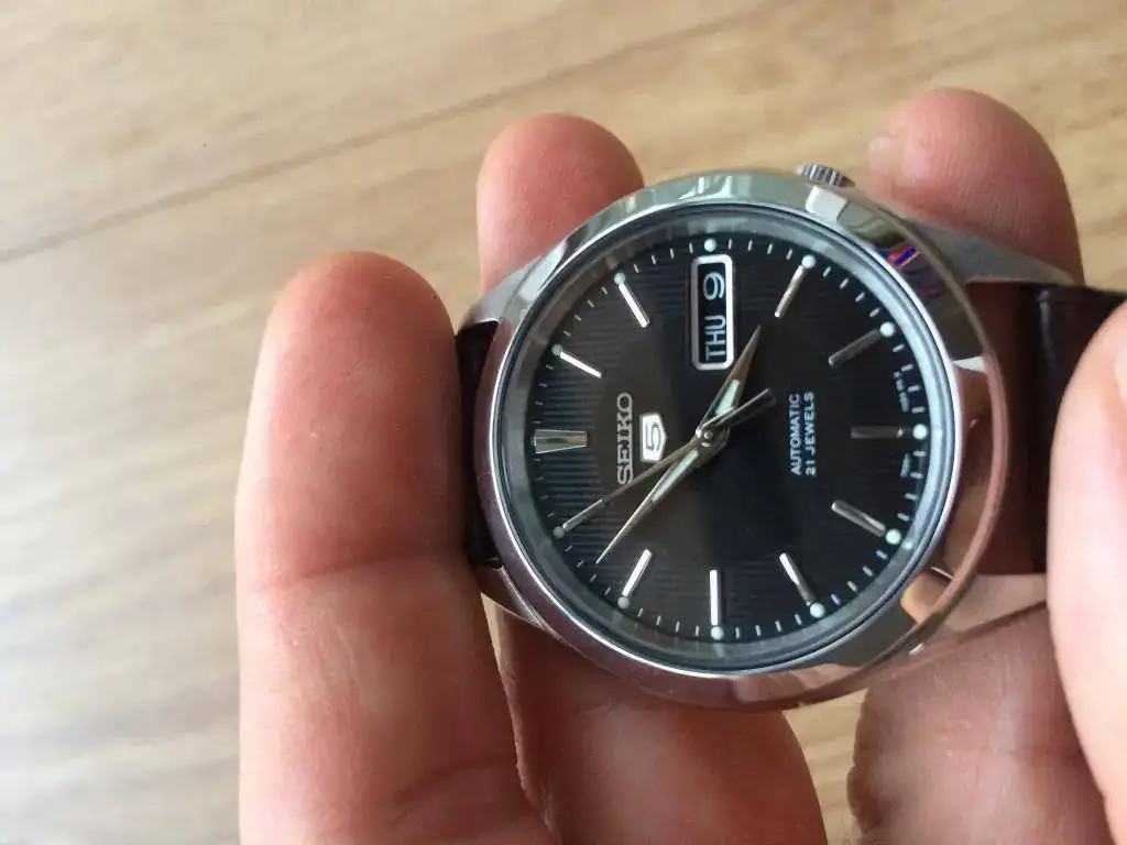 Se trata de un modelo de la saga de Seiko 5, si no recuerdo mal es el SNKL23 que en combinación con una espectacular correa de piel da como resultado un magnífico y elegante reloj de vestir.