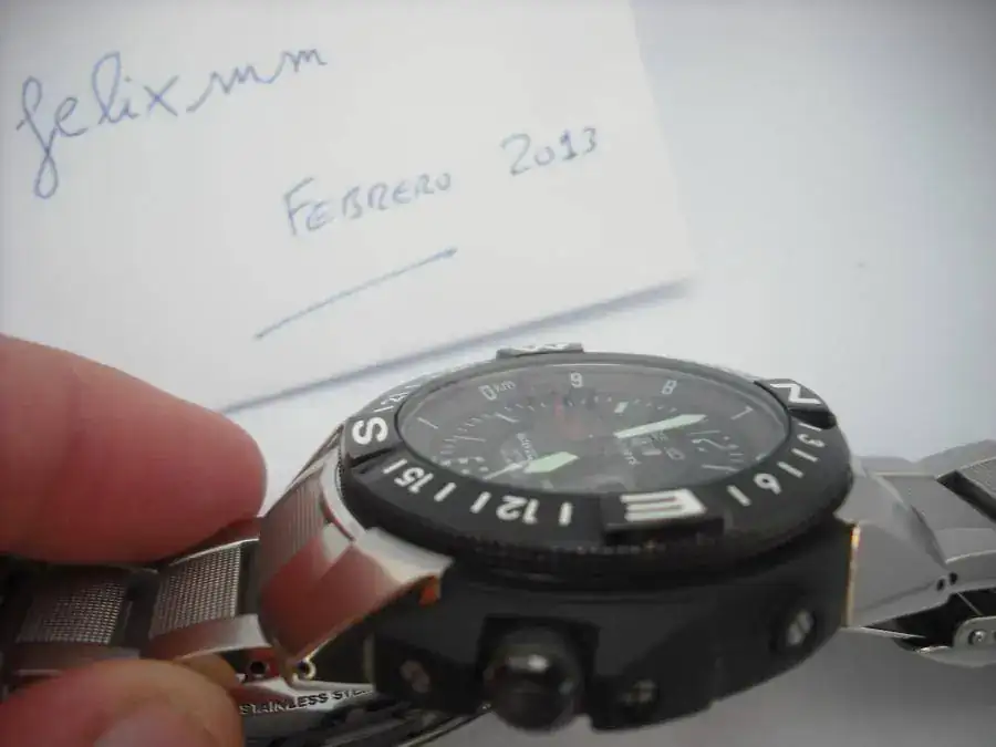 El reloj se encuentra en un estado muy bueno, como se puede ver en las fotos. Solo tiene las típicas microrayas en el cierre (de apoyar en la mesa del ordenador) y un pequeño piquete en la esquina del indicador de N (norte), inapreciable a simple vista, también por el uso en el trabajo con el ordenador. No tiene arañazos, el cristal está perfecto. Si es necesario, se envían más fotos.