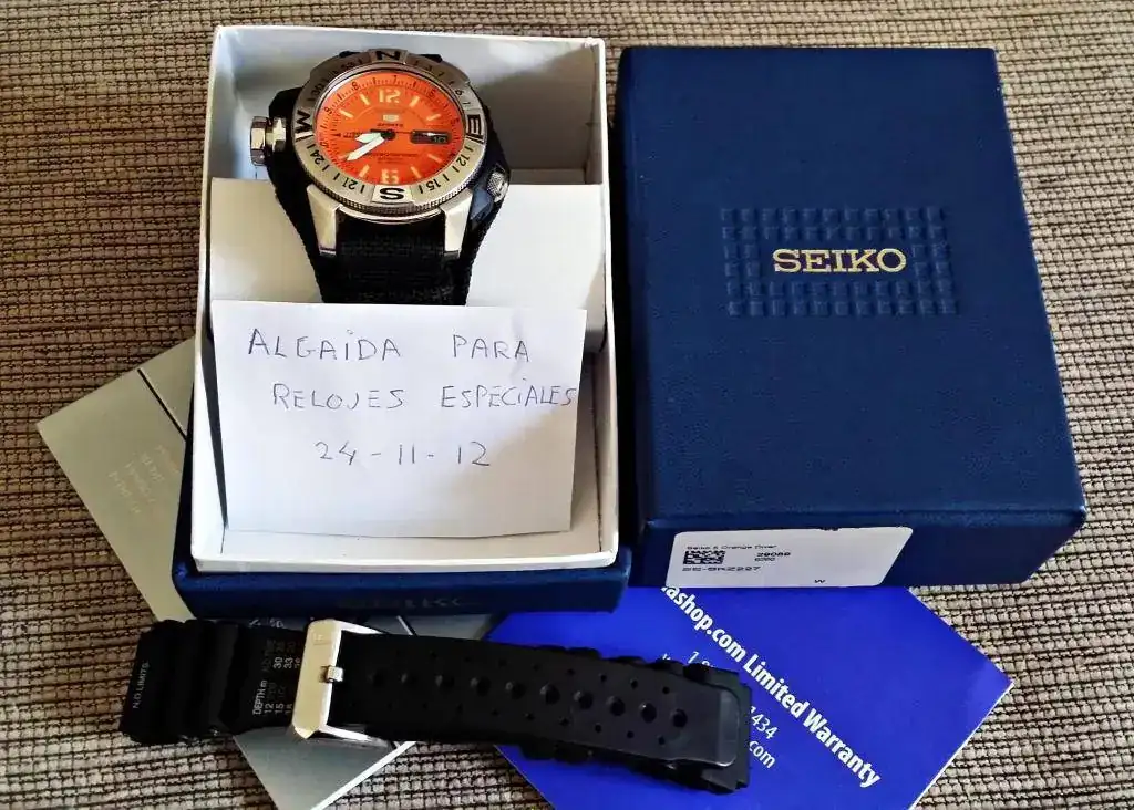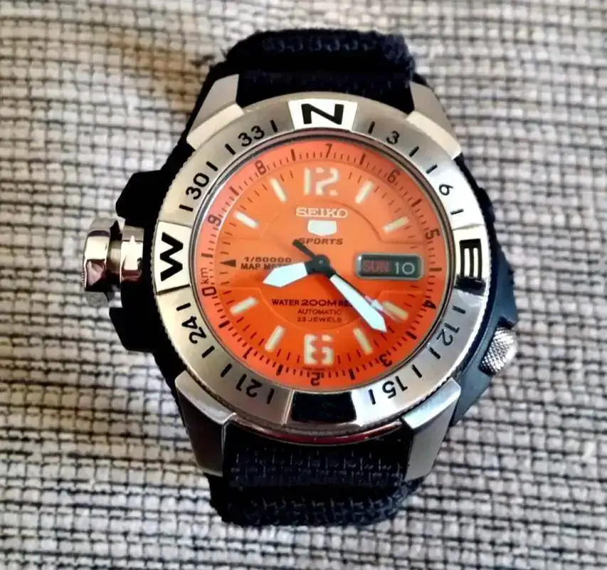 Presento para su venta este prestigioso modelo de Seiko como es el Map Meter, pero en su versión Orange, una versión que en la actualidad es practicamente imposible de conseguir. Viene con su correa de nylon original mas otra correa nueva en caucho ,manuales y estuche original.