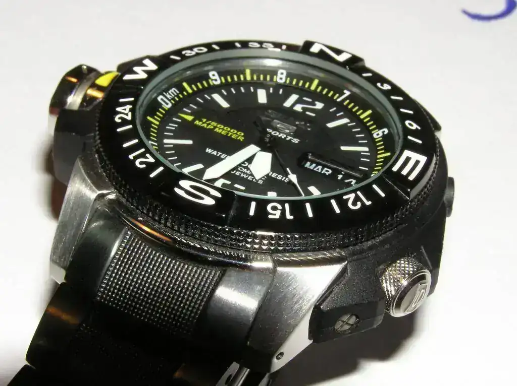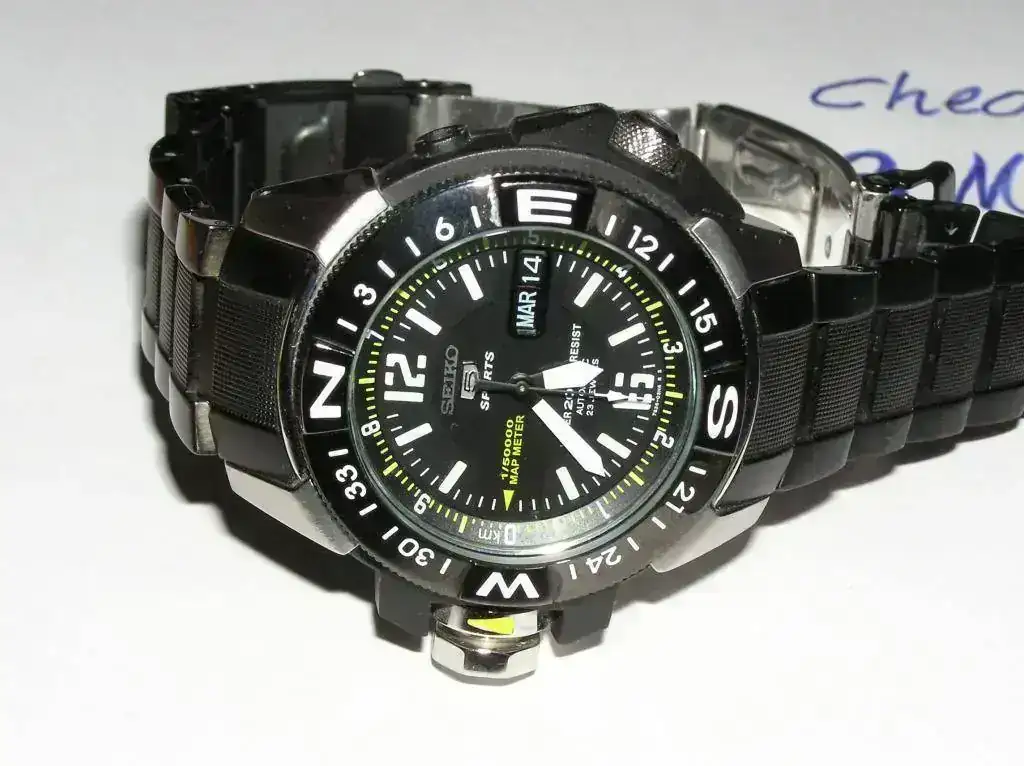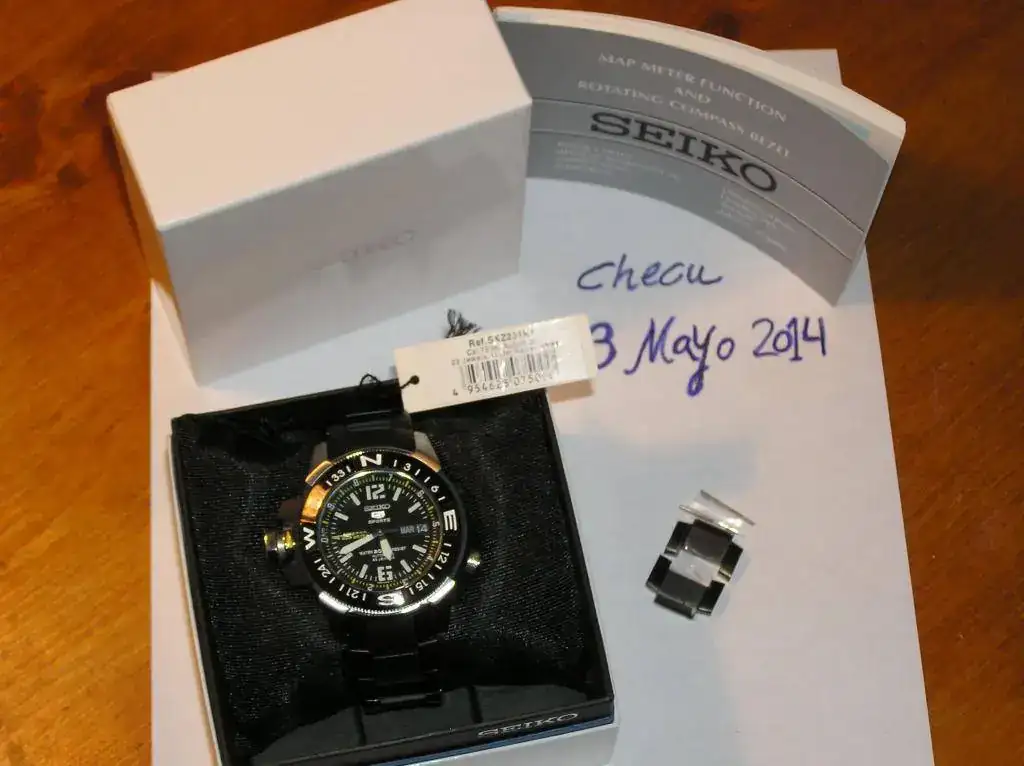 Pongo a la venta un precioso y personalisimo Seiko Mapmeter, con toda la dotacion: caja, libro, 2 eslabones sobrantes y papeles. De absoluto reestreno. No tiene marcas ni en cristal, ni en la caja, ni en el armys, nisiquiera pelillos en el cierre. Se le compre al mercante Antamo en una CRI pero no cuajo y no me le he puesto; el que se lo quede le hace el rodaje desde el principio...