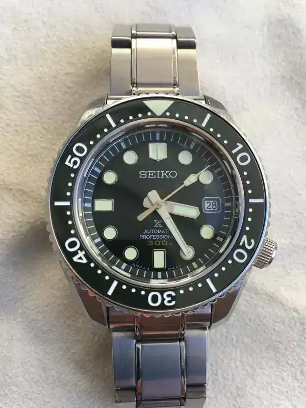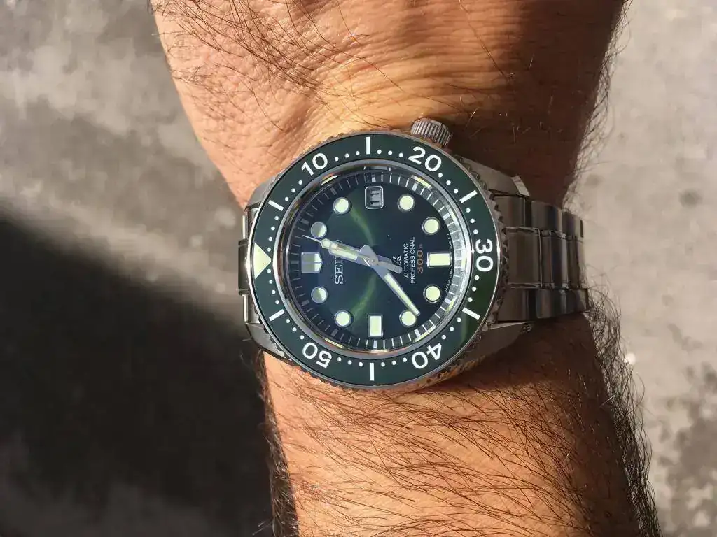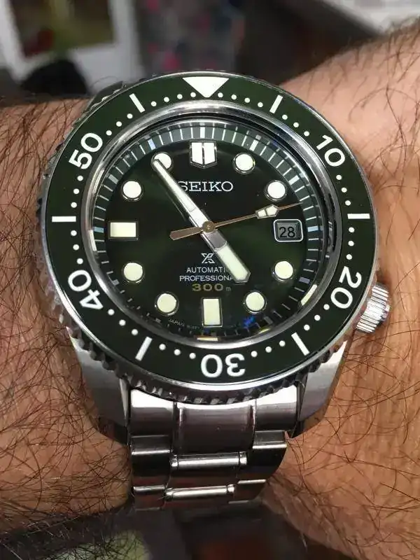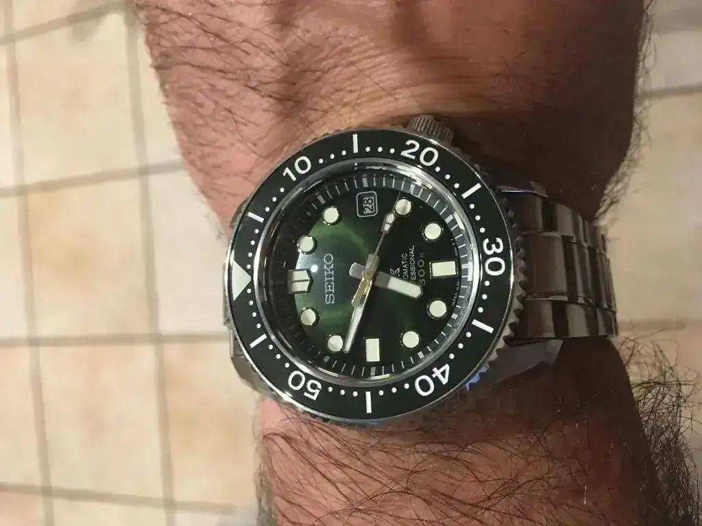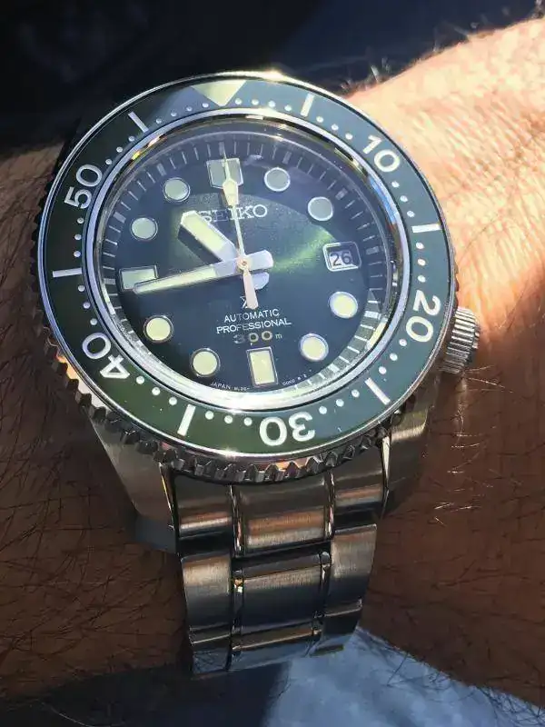 Pues hace ya tiempo que cumplo mi máxima que entra una pieza - ha de salir otra, y en este caso le ha tocado a mi preciado Seiko Marinemaster Green Forest,mi primera incursión en la marca desde hace muchos años y pieza de la que estoy impresionado…...no descubro nada de lo que ya se haya hablado en este foro, desprende una calidad altísima y se lleva en muñeca la mar de bien.Ya sabéis que es una Edición Limitada a 1.968 uds ,primer MM con cristal zafiro y bisel cerámico,y es un reloj camaleónico pues puede parecer tener una esfera casi negra a una verde hipnotizadora.