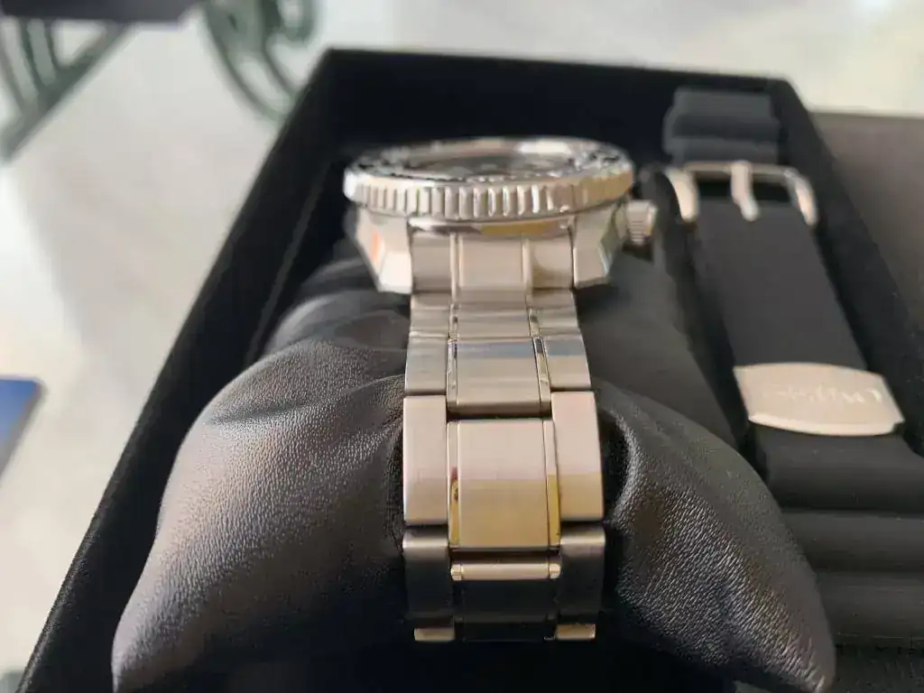 El reloj está como nuevo , pero tiene un arañazo pequeño que desgraciadamente se lo hice yo al ponérmelo por primera vez con una pulsera , este es el motivo por el cual lo pongo a un súper precio , por lo demás esta como nuevo