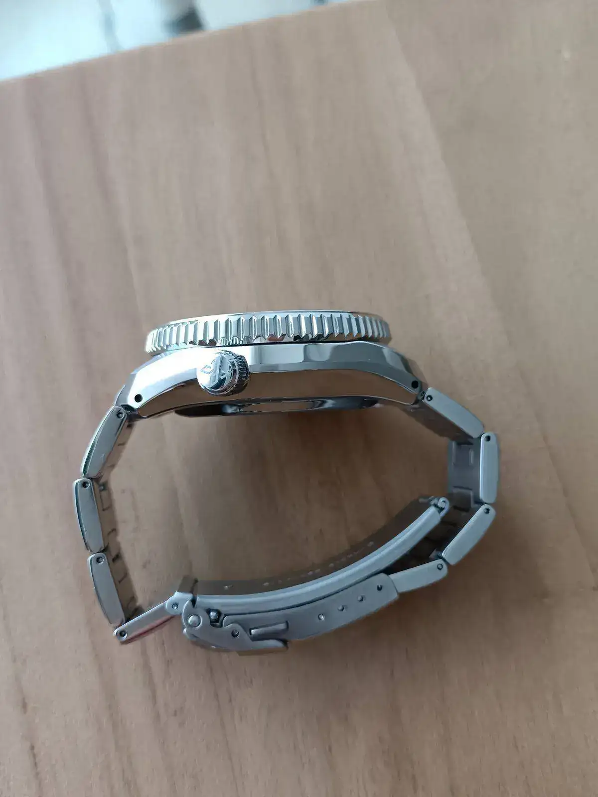 Lo compré a sabiendas que me iría algo grande pero no me resistí a su esfera verde profundo. Es precioso pero me queda grande y no lo he sacado de casa salvo para hacer alguna foto a la luz del día... Esta de absoluto reestreno. No le encuentro ni un solo pelo, literalmente.
