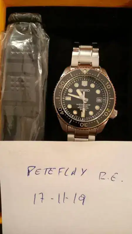 Pongo a la venta este mítico Seiko MM300 SBDX001 (el original), descatalogado ya, que me ha llegado fruto de un cambio, y que creo que no voy a llevar. El reloj está en unas condiciones excelentes, dado el poco uso que ha tenido (según me han dicho), lo más destacable son las típicas marcas de uso en el armis, sobre todo en los eslabones cercanos al cierre, al igual que algunos pelillos imperceptibles en las partes pulidas de la caja. Por lo demás está perfecto, tanto el bisel como el cristal están impolutos, al menos lo que he visto yo. Lo que sí que hay que decir es que el cierre está pulido para quitarle algunos arañazos que tenía, por eso se ve el titanio más oscuro de lo normal. De marcha va razonablemente bien, está en unos +7 al día, aunque yo no lo he comprobado. Mencionar que el bisel va bastante duro, no afecta al funcionamiento general del reloj, pero yo lo aviso para que no haya dudas, ni problemas futuros. El caucho está a estrenar, y se acompaña el conjunto con una nato Bond usada, pero en buen estado, con hebilla original Seiko. Por lo demás el reloj está en un estado envidiable, dado el modelo que es y su antigüedad: según el número de serie está fabricado en 2014, pero se adquirió nuevo en 2017.