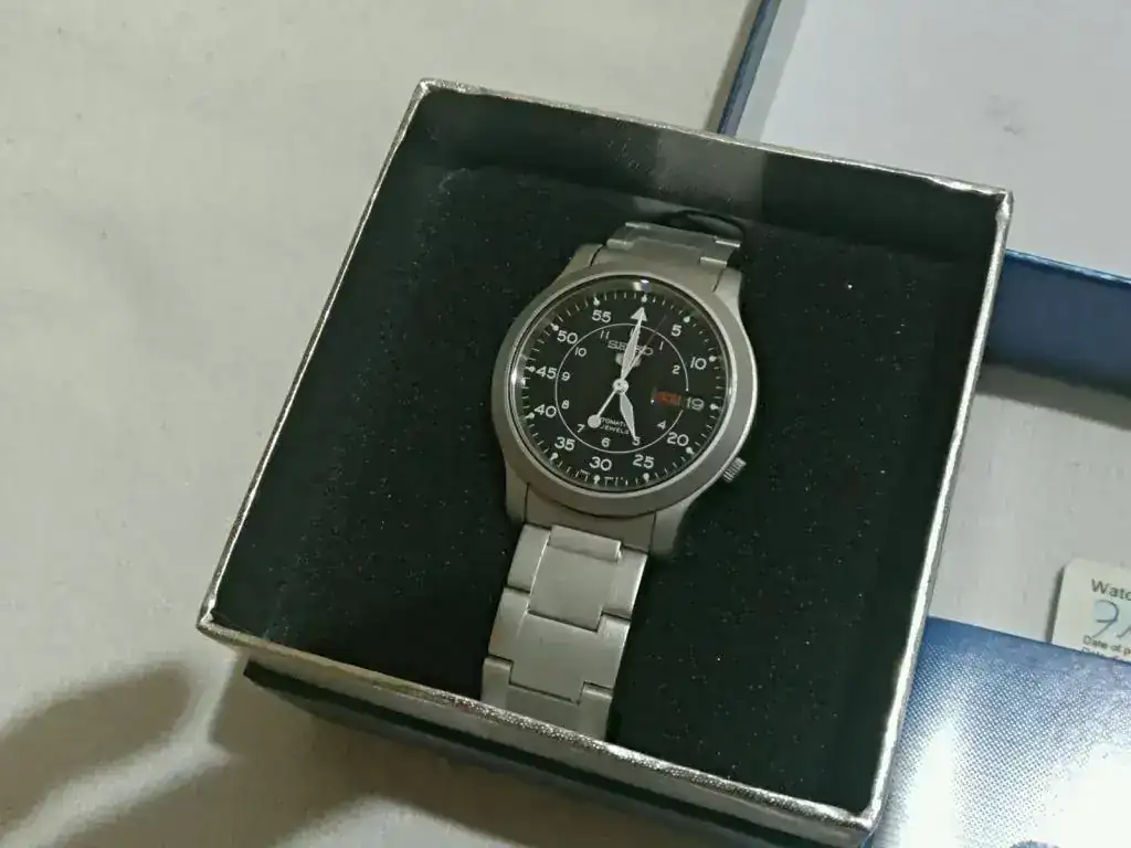 Hola a todos, pongo a la venta este Seiko sin estrenar, con todos su precintos sin una sola puesta, es un clásico para comenzar una colección de calidad, me ha llegado por error, armis, cierre deployante y caja de acero mate, manual y garantía de 23 meses a partir de Mayo, cada vez se ven menos, buen lumen, tamaño cómodo, y una maquinaria muy fiable, no me interesan cambios.