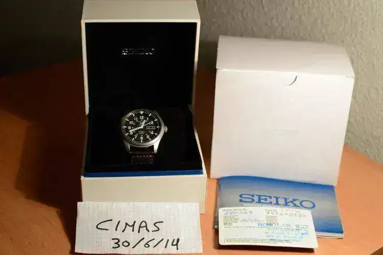 Vendo seiko military 42 milímetros en muy buen estado, con el cristal recién cambiado por un arañazo que se llevo y esta impoluto, sin nada en la caja tampoco, se entrega con correa de piel deportiva con muy poco uso y otra de silicona nueva, tiene toda su dotación, caja, documentación, incluso le quedan unos meses hasta navidad de garantía. Únicamente el cristal me lo cambio un relojero del barrio y no puedo garantizar la estanqueidad del reloj, tiene una marcha muy ajustada.